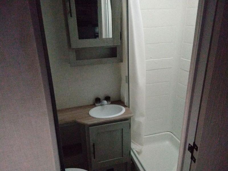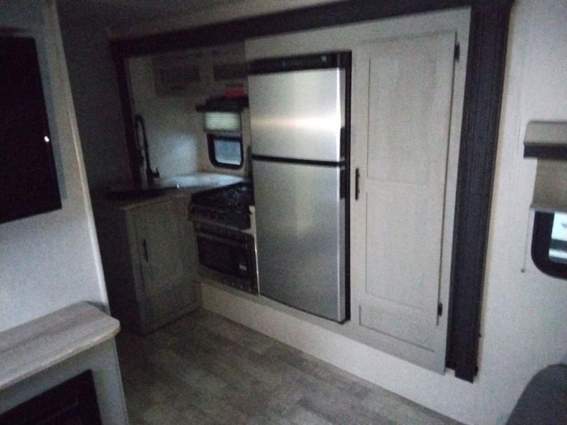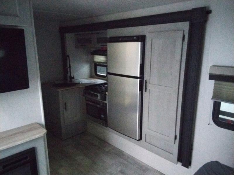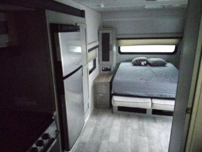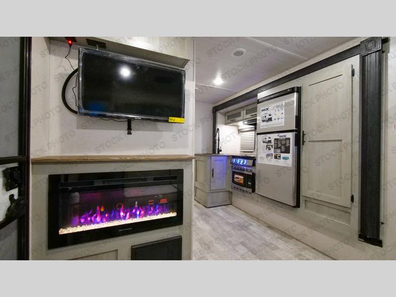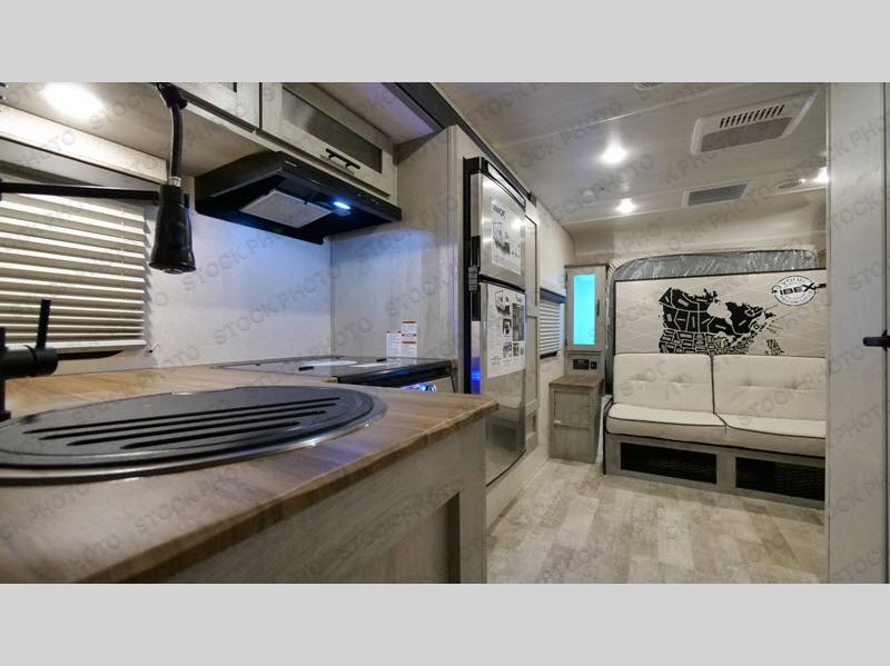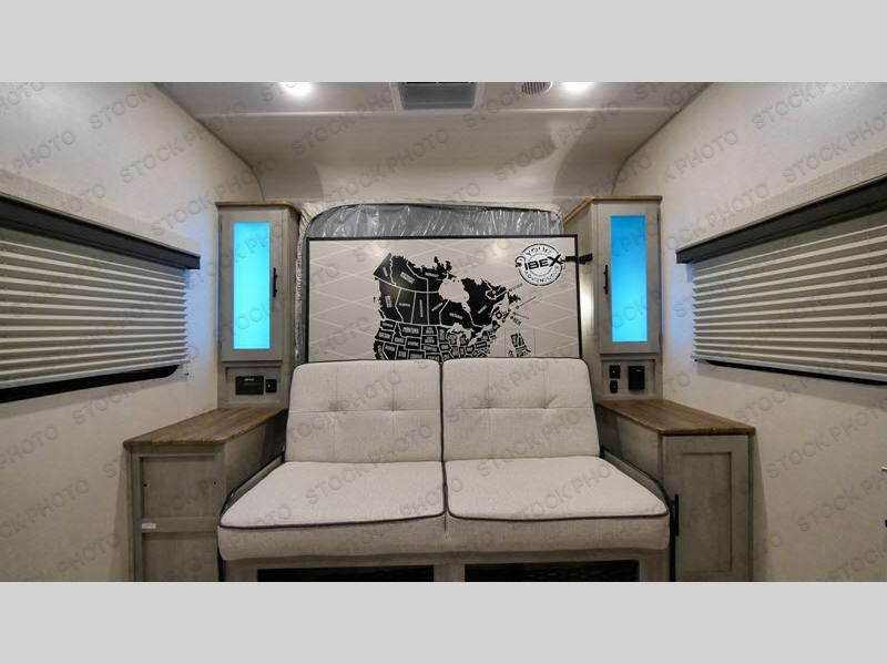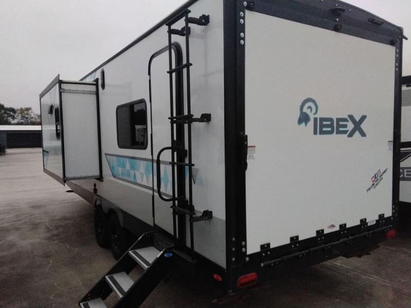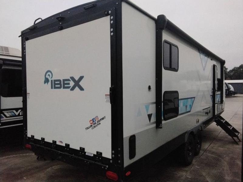 With any IBEX travel trailer or toy hauler by Forest River, the interior offers stainless steel appliances for style, seamless countertops for durability and easy care, and a largest-in-class refrigerator for more cold storage. The Azdel construction and PVC roof will help extend the life of your unit, and the all terrain tires and increased ground clearance means you can go more places. A JBL wireless Bluetooth audio system also comes standard so you can listen to your favorite tunes, along with Rhino-Rack RTV tracks to keep your gear secure!