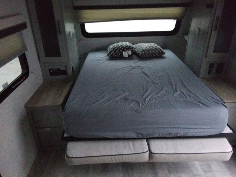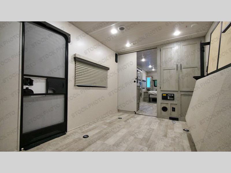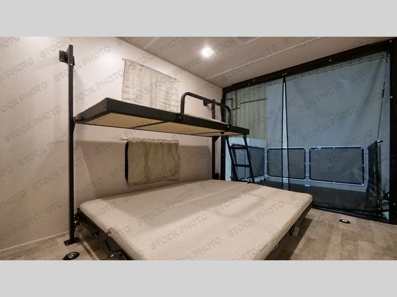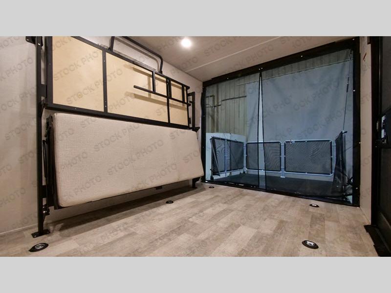Get ready for fun with your toys when you have this toy hauler at the campgrounds, off-grid or where ever you decide to go! The separate garage offers a side door for easy access to your toys, plus a bunk bed system with a single above a double, both of which can fold away for more space. There is a slide out with full kitchen amenities giving you even more floor space, plus a pantry for dry goods. The full bathroom allows you to get cleaned up before bedtime, and the front doubles as a bedroom and a living area thanks to the sofa and Murphy bed combination. Along the exterior you will find a pass-through storage for more gear, an awning to relax underneath, and the ramp door can become a party deck if you choose to add that. And you might like to add the optional Unplugged Package that comes with premium lithium-ion batteries, an easy view control panel, a high efficiency A/C, and more!