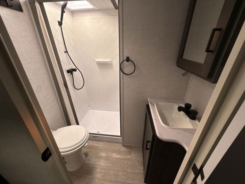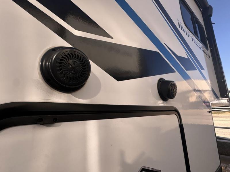 With any Impression mid-profile fifth wheel by Forest River, the focus of the design is comfort and value, built with quality craftsmanship and attention to customer's desires in each Impression! The exterior includes upgraded E-rated Goodyear Endurance tires made in the U.S.A., custom exterior graphics package, and One Touch automatic leveling system for easy setup. There is also an enclosed docking station and a gel coat fiberglass front cap with an automotive windshield with LED lights for style and beautiful views. The fully heated and enclosed AccessiBelly has removable underbelly panels and offers four seasons of travel. The interior has oversized opening windows in the living area for more natural lighting and good air flow, a stainless steel single bowl sink with high rise faucet with a pulldown sprayer to easily clean the dishes, and a porcelain foot flush toilet to mention a few comforts and conveniences.