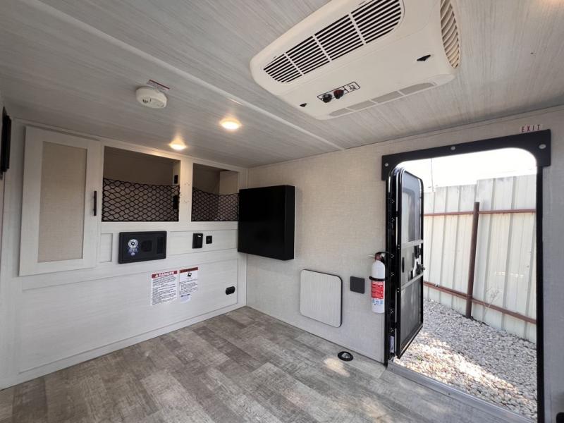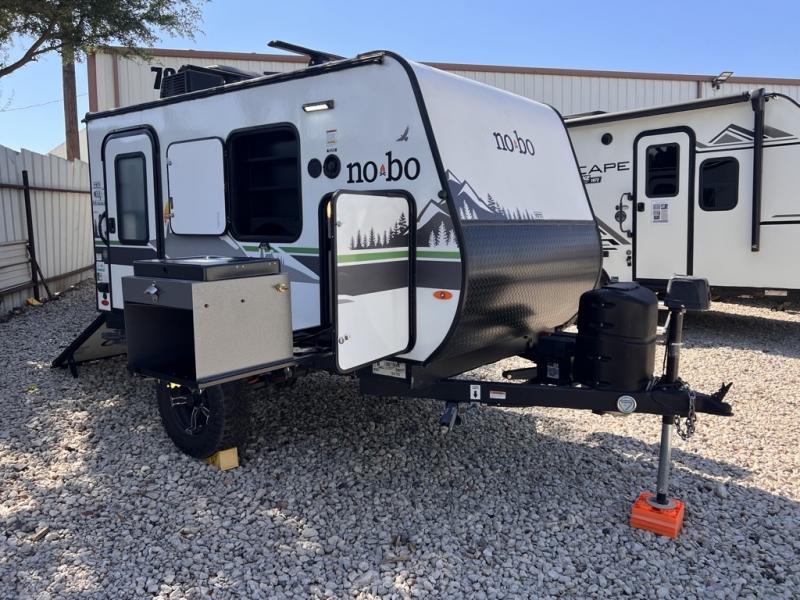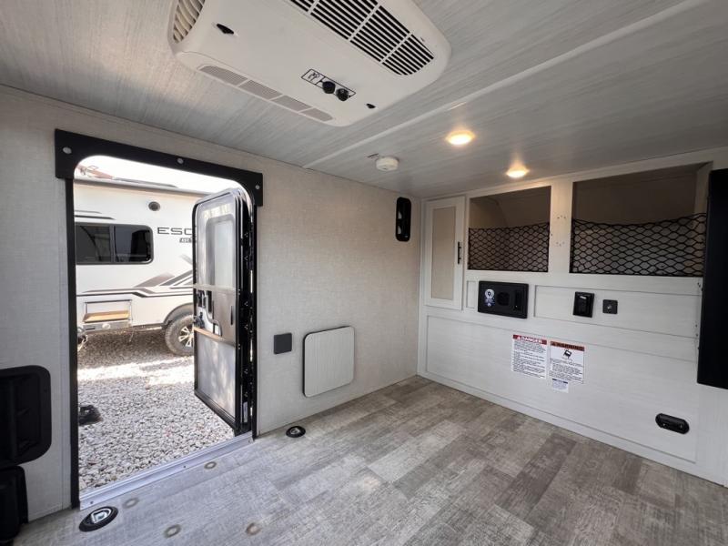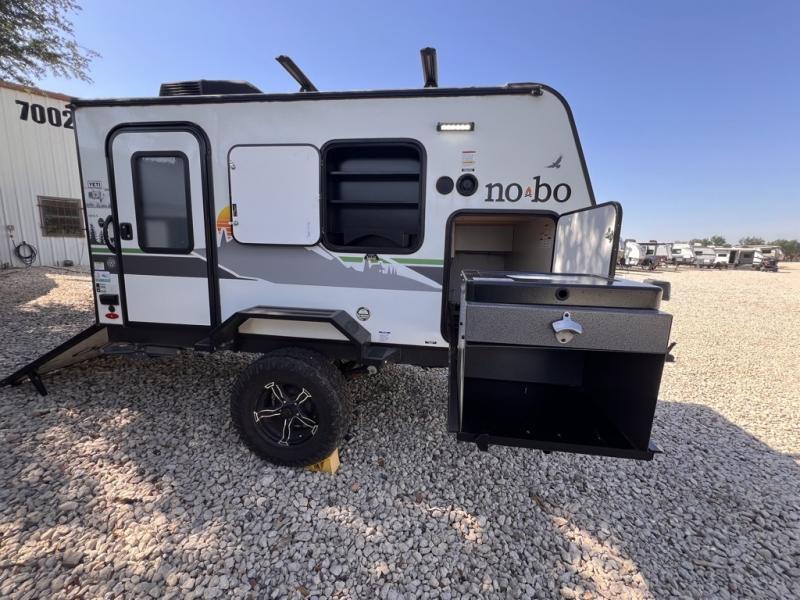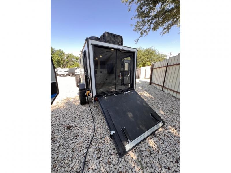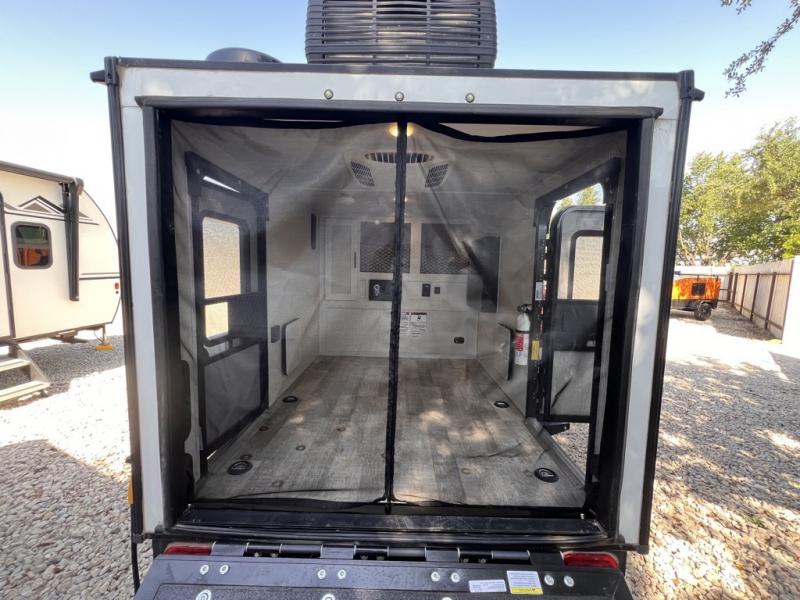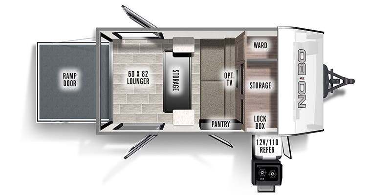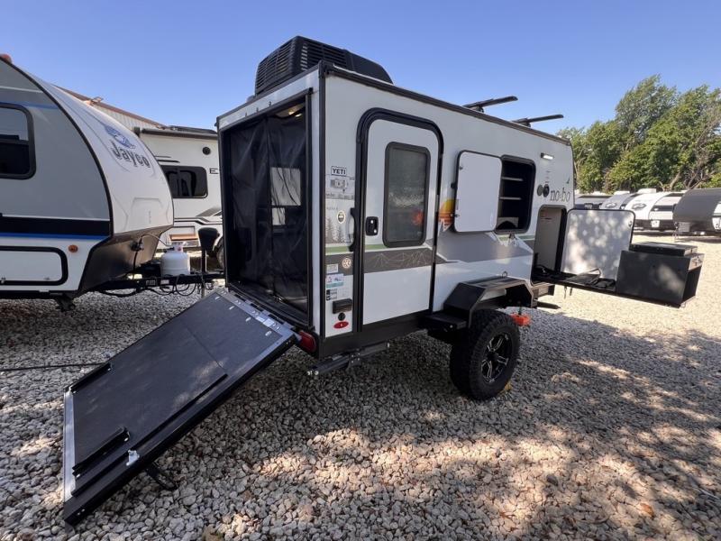 Use this No Boundaries toy hauler to get away for a weekend with your favorite toys! There is a ramp door to help you load up your four-wheeler, and you can also store kayaks with the J-cradle kayak holder. You have a 60" x 82" sleeping space to rest on inside and the NoBo Nest Rooftop Tent with ladder for more sleeping, and an exterior cooktop/refrigerator to prepare your meals. You'll also be able to add quite a few options, like the optional TV, batwing awning or dinette package. There are two entry doors on either side of this trailer, and when you add the ramp door to that count, you get an amazing amount of accessibility.
