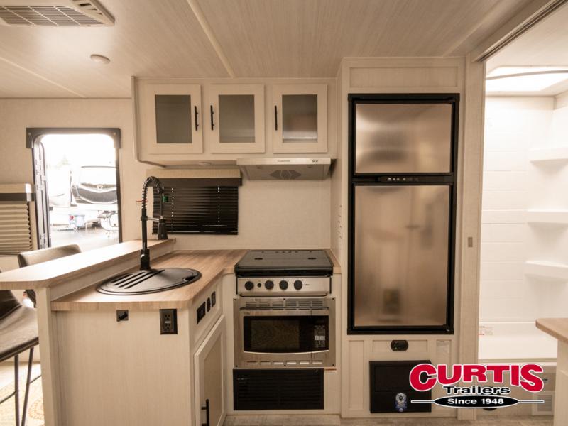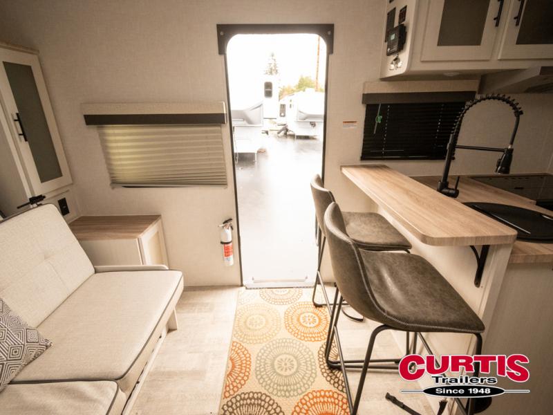 You won't be bound by boring travels any longer with this No Boundaries travel trailer! You can go just about anywhere with this rugged trailer, and you will find many features that will make your life easier while you're away. The entertainment center will give you something to do on a rainy day, and the kitchen will provide you with the tools needed to whip up a meal whenever you're hungry. The rear bathroom has a wardrobe for your towels, and the dinette slide adds space for you to lounge in this trailer. Up front, you'll be able to rest on a sofa during the day, and you can reposition this sofa to showcase a Murphy bed at night for sleeping. Add the optional Un-Plugged package to take your camping experience to a whole new level. Some features included in this package are 600 watts of solar, premium Lithium-ion batteries, a 3,000 watt inverter charger, a high-efficiency A/C, and more.