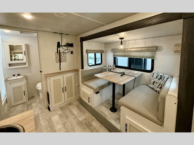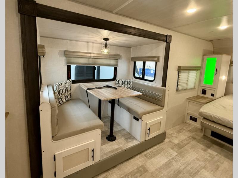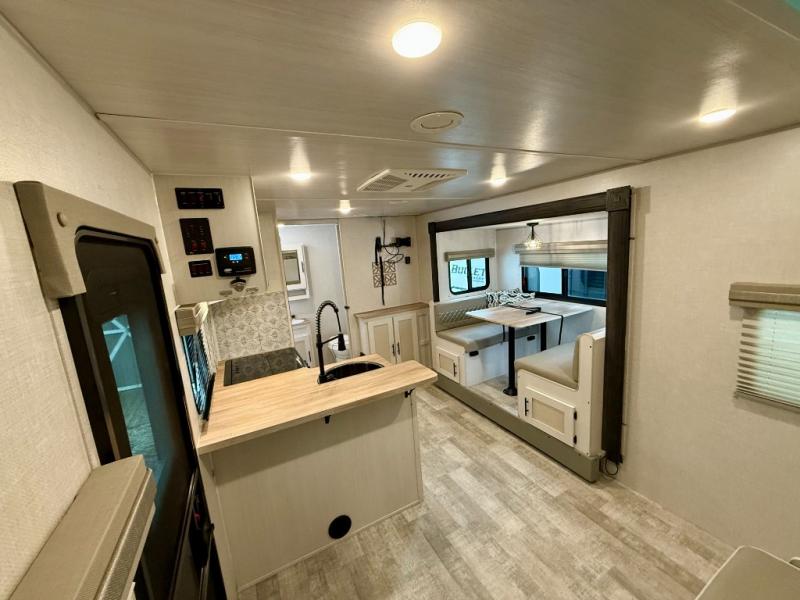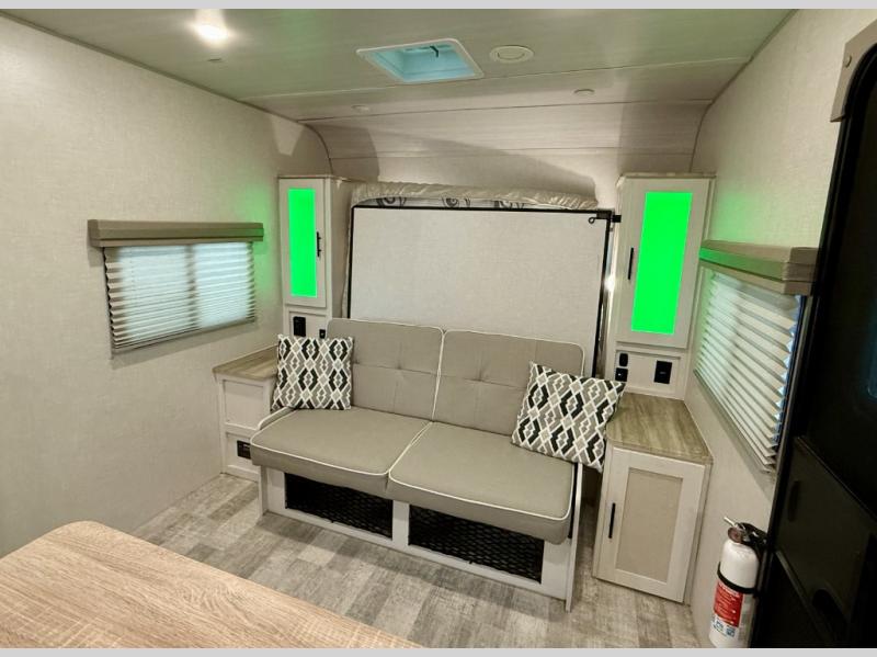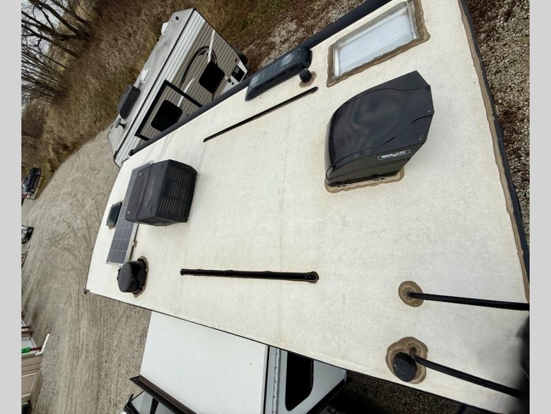 You won't be bound by boring travels any longer with this No Boundaries travel trailer! You can go just about anywhere with this rugged trailer, and you will find many features that will make your life easier while you're away. The entertainment center will give you something to do on a rainy day, and the kitchen will provide you with the tools needed to whip up a meal whenever you're hungry. The rear bathroom has a wardrobe for your towels, and the dinette slide adds space for you to lounge in this trailer. Up front, you'll be able to rest on a sofa during the day, and you can reposition this sofa to showcase a Murphy bed at night for sleeping. Add the optional Un-Plugged package to take your camping experience to a whole new level. Some features included in this package are 600 watts of solar, premium Lithium-ion batteries, a 3,000 watt inverter charger, a high-efficiency A/C, and more.