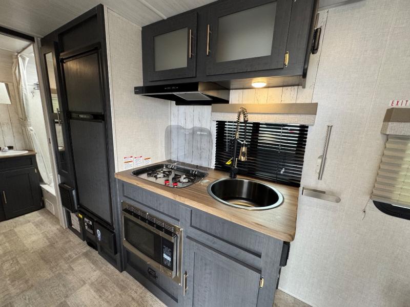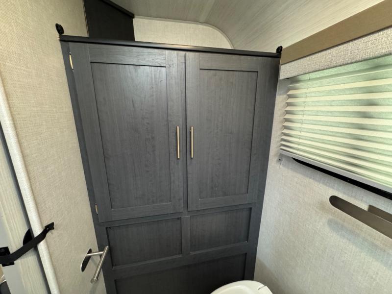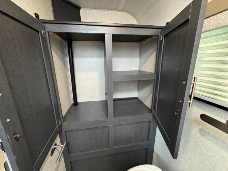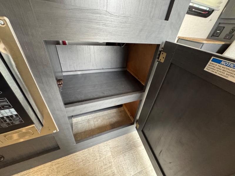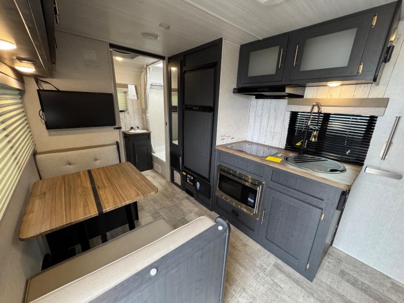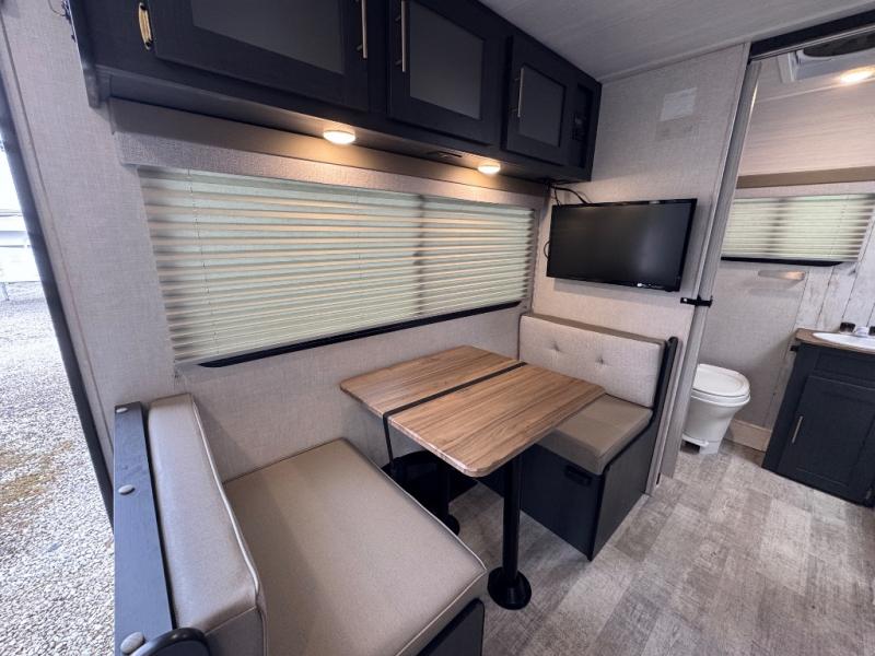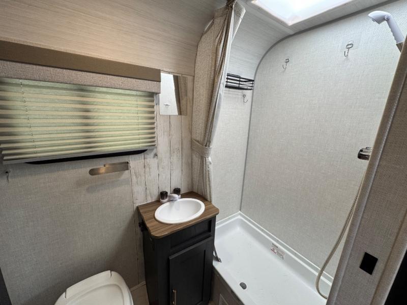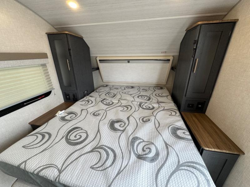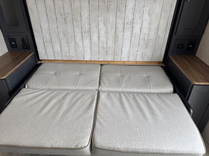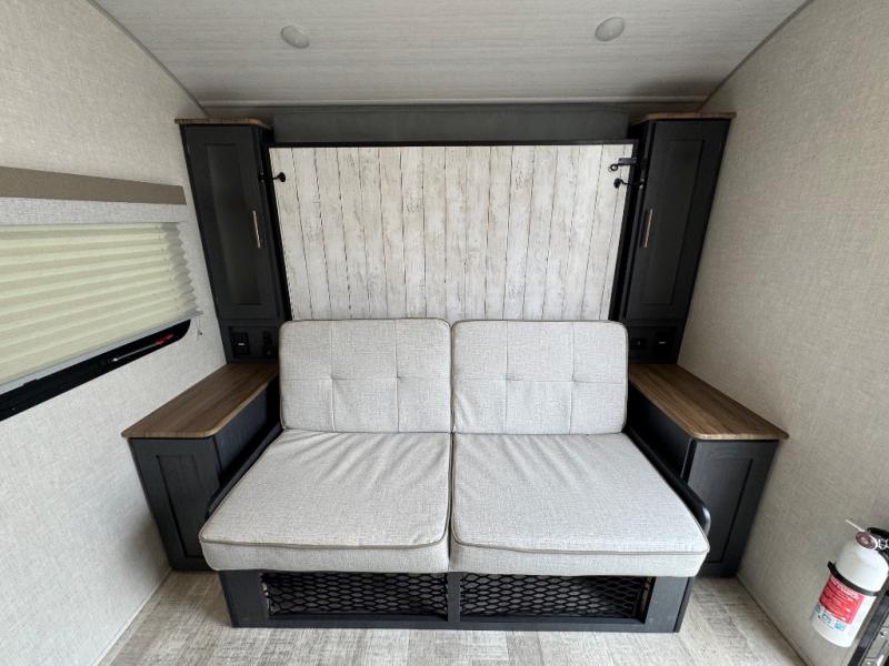 You're going to love all of the conveniences and versatility of this R-Pod travel trailer! The front Murphy bed can fold away to reveal a sofa which gives you a comfortable place to sit during the day and to sleep at night too. The rear full bath features everything you will need to get squeaky clean each morning, as well as a large wardrobe for you to store your linens. After you have whipped up your best meal with the two-burner cooktop or convection microwave, you can head to the 30" x 75" booth dinette and enjoy eating it there comfortably. There is plenty of storage space inside, but if you need more space, then you can use the exterior pass-through storage!