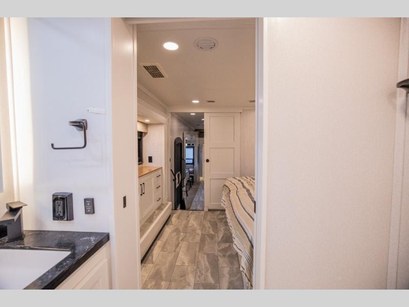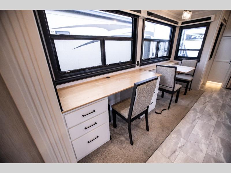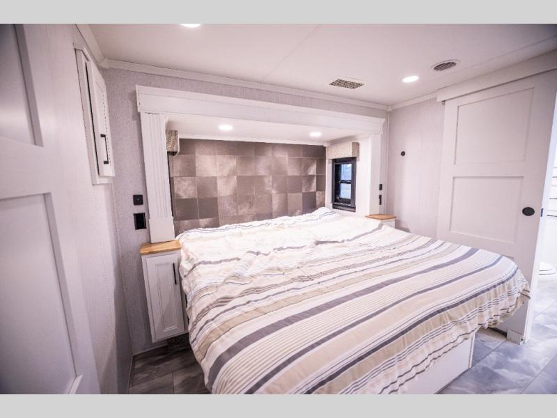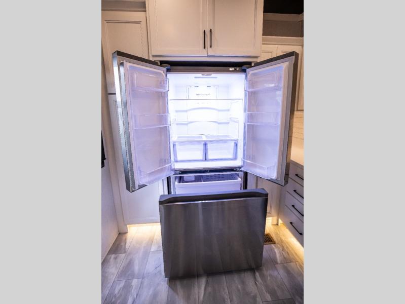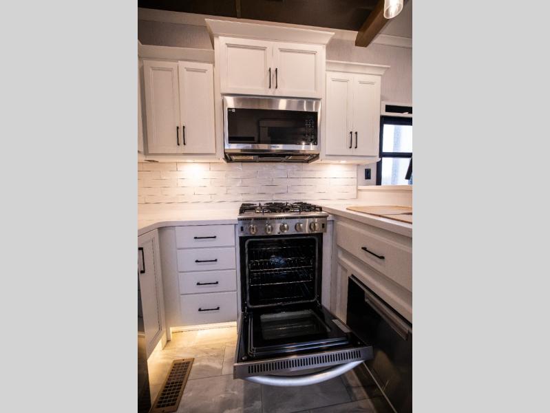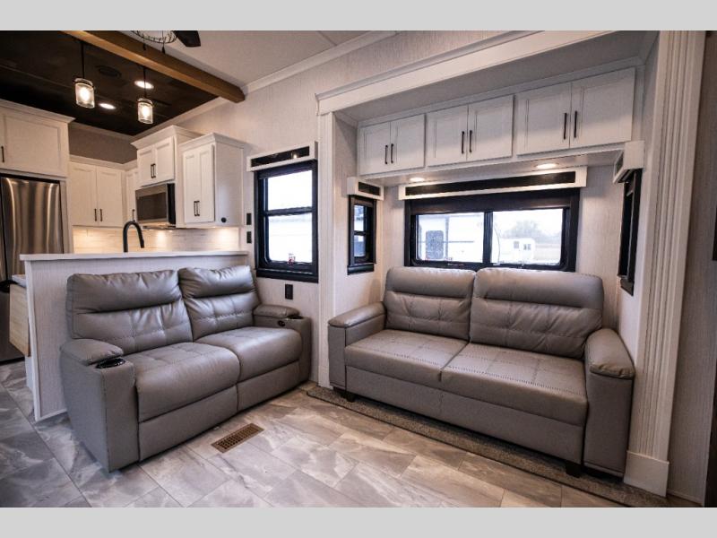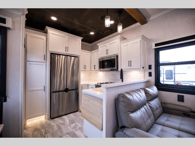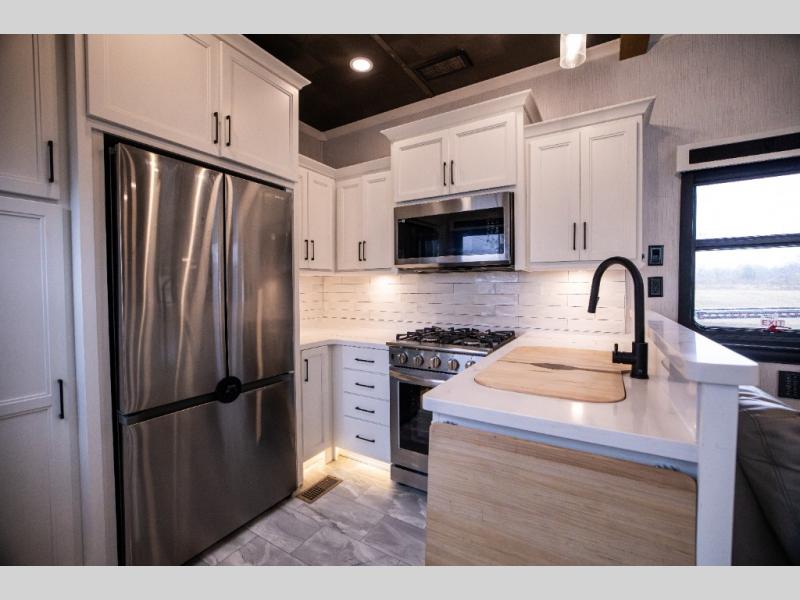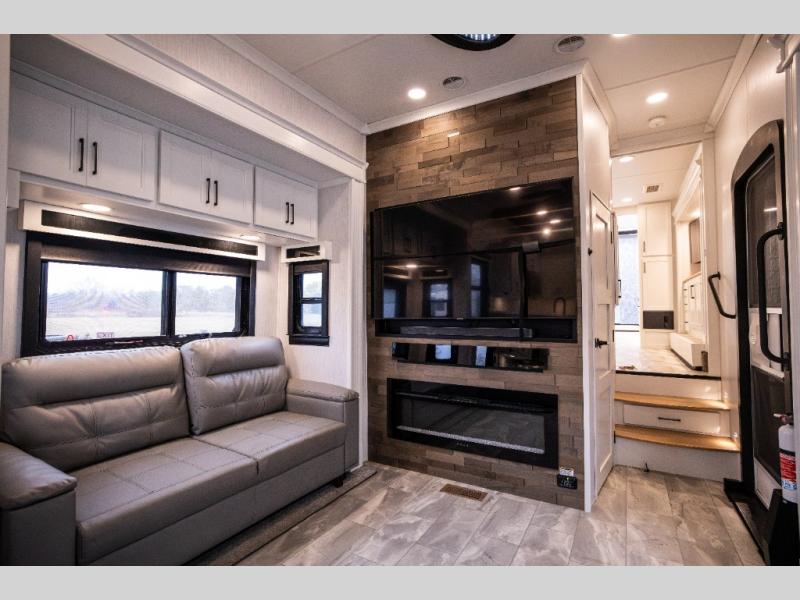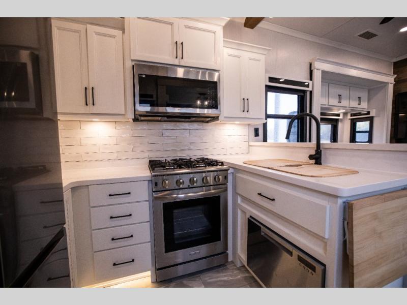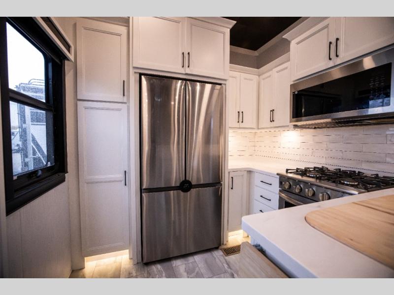 The Forest River RiverStone fifth wheels and toy haulers are luxurious units that have it all! You'll find an automatic six-point hydraulic level-up system to keep your unit in place, and there is preparation for a four-camera observation system. The King Wi-Fi Max router and omni-directional Wi-Fi antenna/extender will help you stay connected to the outside world, and you'll never have to overpack again since the Splendid “Astral” stackable washer and dryer will let you clean the small amount of clothes you've brought with you. Another high luxury is the Fischer Paykal dishwasher which will allow you to spend more time enjoying your camp life and less time cleaning up. Each unit is built with a Trail-Aire Road Armour suspension system, dual-pane frameless windows, a full docking station, a 190W solar panel, and a Firefly integrated touch control system.