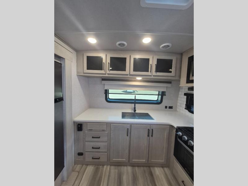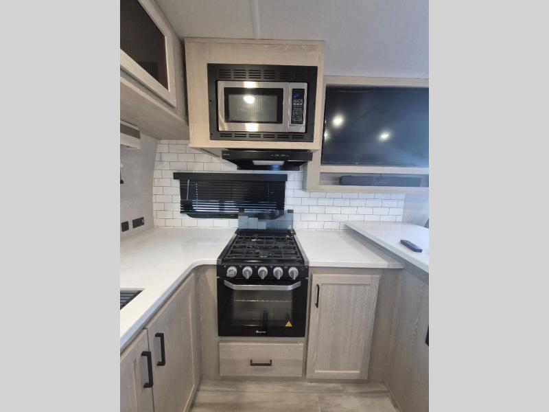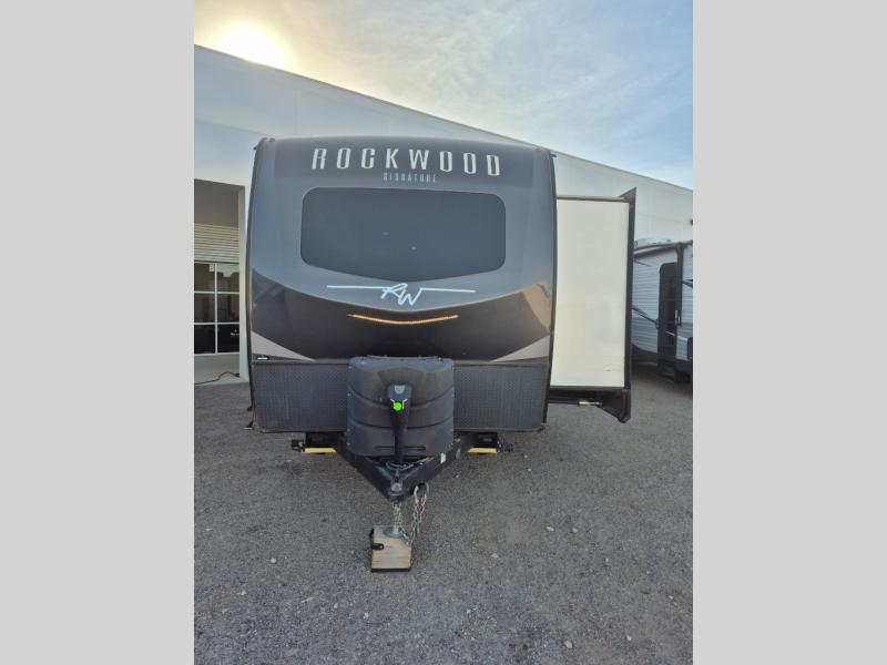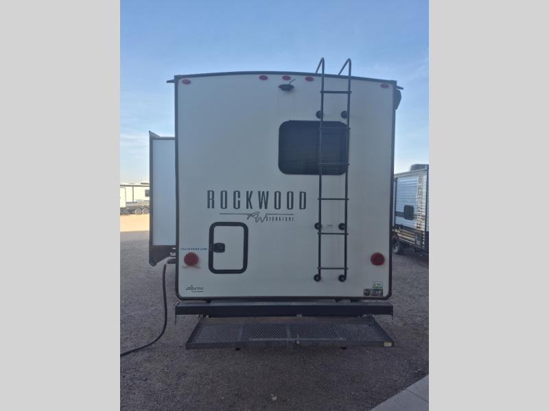 With any Rockwood Signature fifth wheel or travel trailer by Forest River RV, the superior construction includes white or champagne fiberglass sidewalls, a one piece seamless roof membrane, 6-sided aluminum framed walls, floors and roof, plus radiant foil insulation and an enclosed underbelly for use in all types of weather. Some safety standards include Dexter torsion axles, MORryde strut assist steps, and the TST tire pressure monitor system. The interior offers a One Touch OneControl panel with WeRV app control, for lights, awning, slides, water heater and more. You will also appreciate the interior vaulted ceilings, residential soft close doors and drawers, plus solid surface kitchen countertops, a designer kitchen backsplash, plus many more features depending on which Rockwood Signature unit you choose!