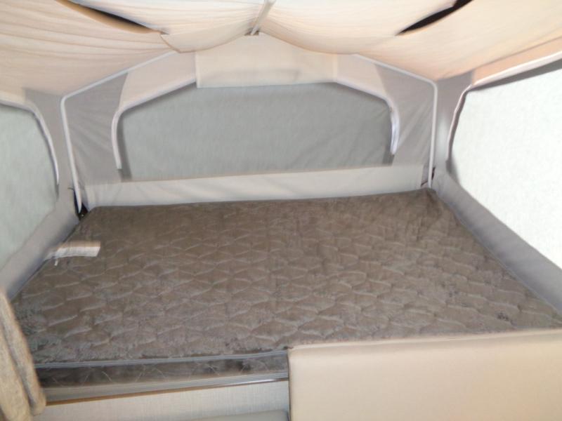 With any Rockwood Extreme Sports Package folding pop-up camper, you will have confidence in the construction from the powder coated tubular steel frame, the fiberglass vacuum bonded radius roof with no center seam, the five-piece Vinolon Supreme tenting, and the full perimeter aluminum bed frames. The ESP Extreme package provides features such as aluminum wheels with 15" Mud Rover tires for better ground-clearance to reach places most RVs wouldn't try, a 200W roof mount solar panel with 1000W inverter, ProRac permanent crossbars, and a power roof lift, plus more. And the interior offers conveniences and comforts while exploring the boundaries.