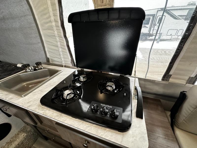 Easy to store, easy to tow and easy to set up is what you will enjoy each and every time you and your group or family of six head out to the campgrounds! There are two tent end beds allowing four to sleep above ground, plus a sofa bed and booth dinette that can double as dining and sleeping space. The cook will have a swing galley with a range and sink to make meals inside as well as an exterior griddle. The interior also offers residential style cabinet doors, full extension metal drawer guides, plus USB charging ports to keep the electronics ready.