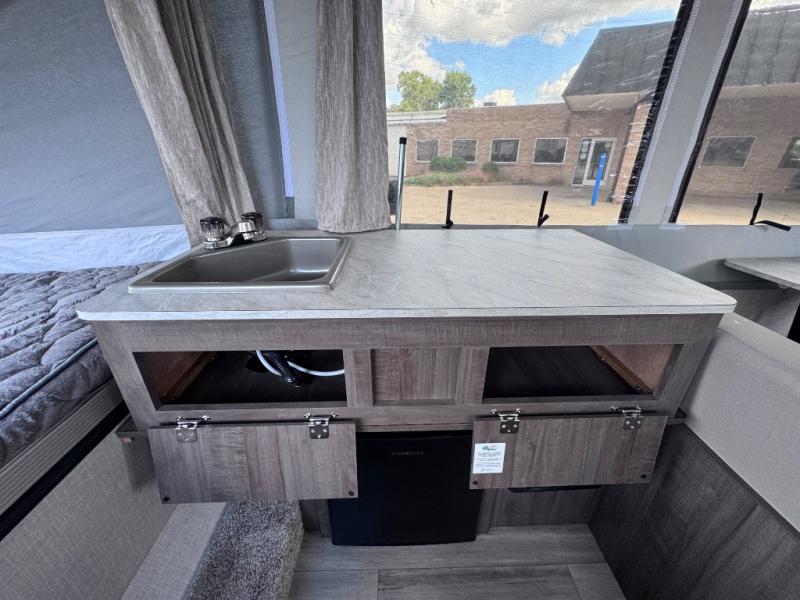 With any Forest River Rockwood Limited (LTD) Series you will enjoy an entry-level tent camper for all your outdoor adventures. You'll love the gray exterior and Autumn Wood interior with wood look flooring and wood drawers. The privacy curtains will come in handy when you're at the campground and there is a one-piece screen door to let fresh air in and bugs out! The bunk end mattresses are heated for your comfort and each model includes interior LED lights, an inside/outside two burner stove, an exterior awning, and many more camping conveniences.