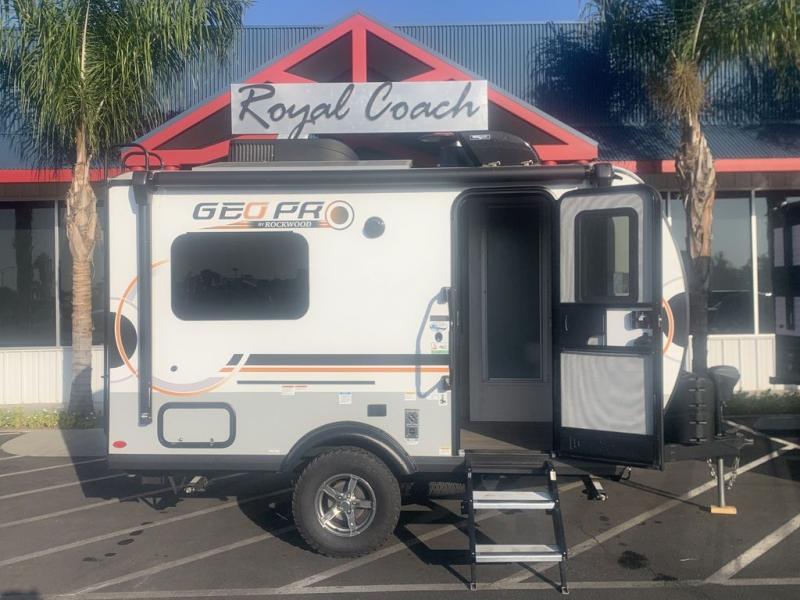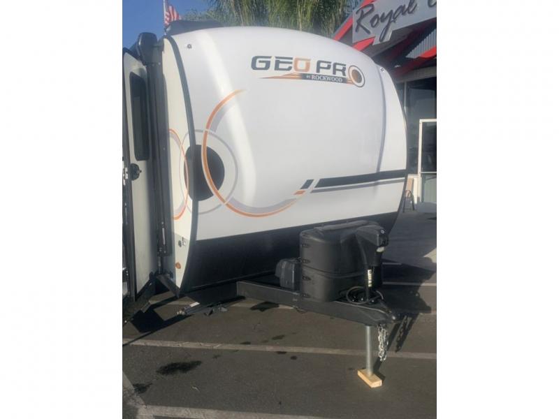 The Rockwood GEO Pro travel trailers and toy hauler by Forest River are ready for all your adventures. The interior and exterior Azdel construction, along with the vacuum laminated roof and walls provide a durable trailer, and the Dexter torsion axles with aluminum wheels make towing easier than ever. There are many convenient amenities, like the 13,500 BTU A/C, the Bluetooth system control panel, and the all-in-one Teton HD TV/WiFi/FM antenna with LTE prep. Each model includes frameless windows, fabric valances and roller shades, and a modern interior that will make you feel right at home. Everything you're looking for in your next RV is in a Rockwood GEO pro by Forest River!