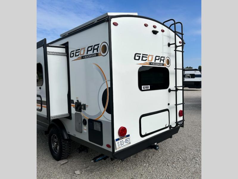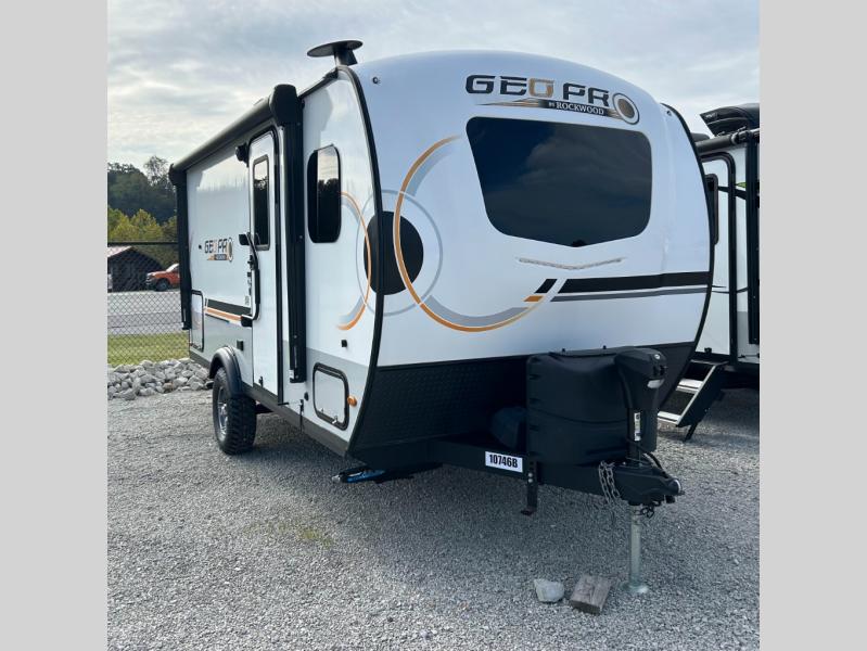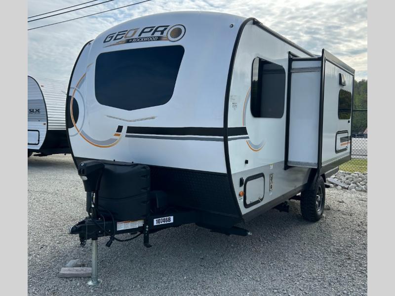 The Rockwood GEO Pro travel trailers and toy hauler by Forest River are ready for all your adventures. The interior and exterior Azdel construction, along with the vacuum laminated roof and walls provide a durable trailer, and the Dexter torsion axles with aluminum wheels make towing easier than ever. There are many convenient amenities, like the 13,500 BTU A/C, the Bluetooth system control panel, and the all-in-one Teton HD TV/WiFi/FM antenna with LTE prep. Each model includes frameless windows, fabric valances and roller shades, and a modern interior that will make you feel right at home. Everything you're looking for in your next RV is in a Rockwood GEO pro by Forest River!