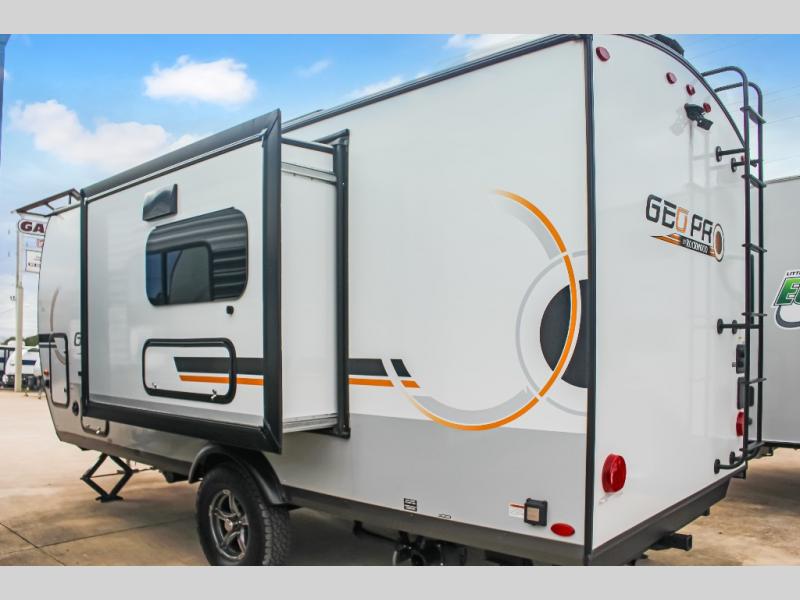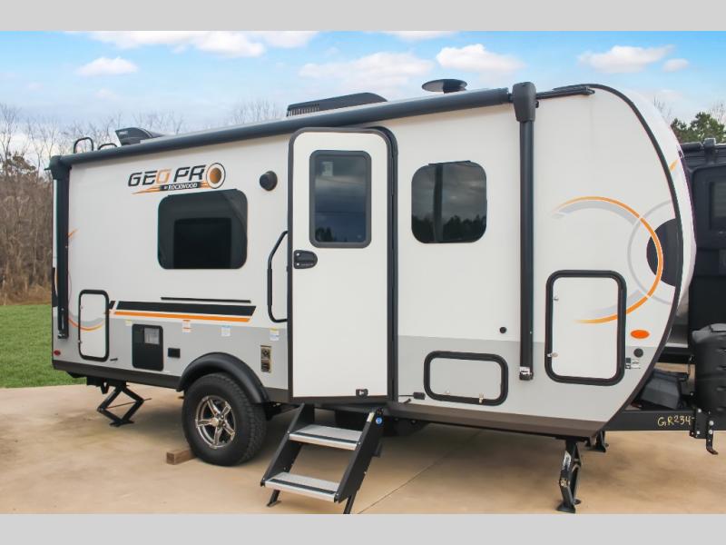 The Rockwood GEO Pro travel trailers and toy hauler by Forest River are ready for all your adventures. The interior and exterior Azdel construction, along with the vacuum laminated roof and walls provide a durable trailer, and the Dexter torsion axles with aluminum wheels make towing easier than ever. There are many convenient amenities, like the 13,500 BTU A/C, the Bluetooth system control panel, and the all-in-one Teton HD TV/WiFi/FM antenna with LTE prep. Each model includes frameless windows, fabric valances and roller shades, and a modern interior that will make you feel right at home. Everything you're looking for in your next RV is in a Rockwood GEO pro by Forest River!