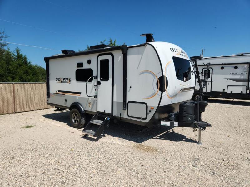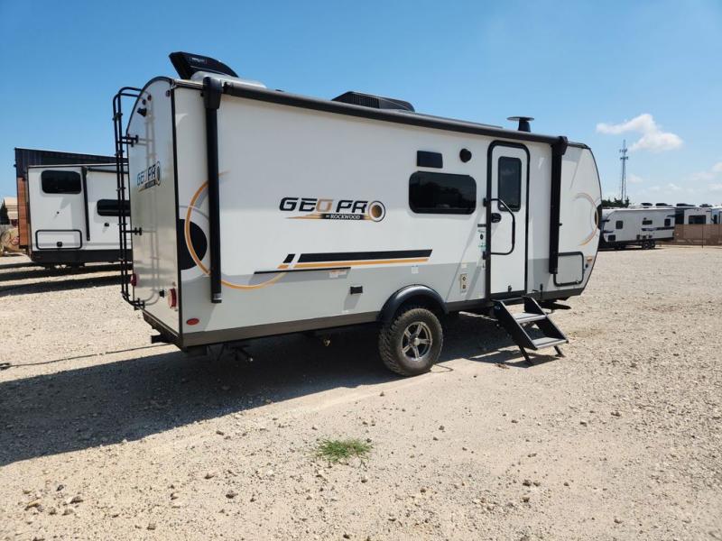 The Rockwood GEO Pro travel trailers and toy hauler by Forest River are ready for all your adventures. The interior and exterior Azdel construction, along with the vacuum laminated roof and walls provide a durable trailer, and the Dexter torsion axles with aluminum wheels make towing easier than ever. There are many convenient amenities, like the 13,500 BTU A/C, the Bluetooth system control panel, and the all-in-one Teton HD TV/WiFi/FM antenna with LTE prep. Each model includes frameless windows, fabric valances and roller shades, and a modern interior that will make you feel right at home. Everything you're looking for in your next RV is in a Rockwood GEO pro by Forest River!