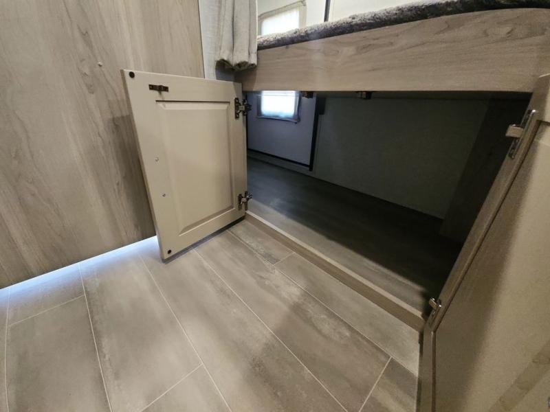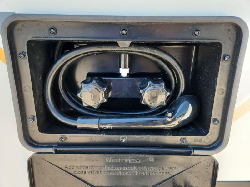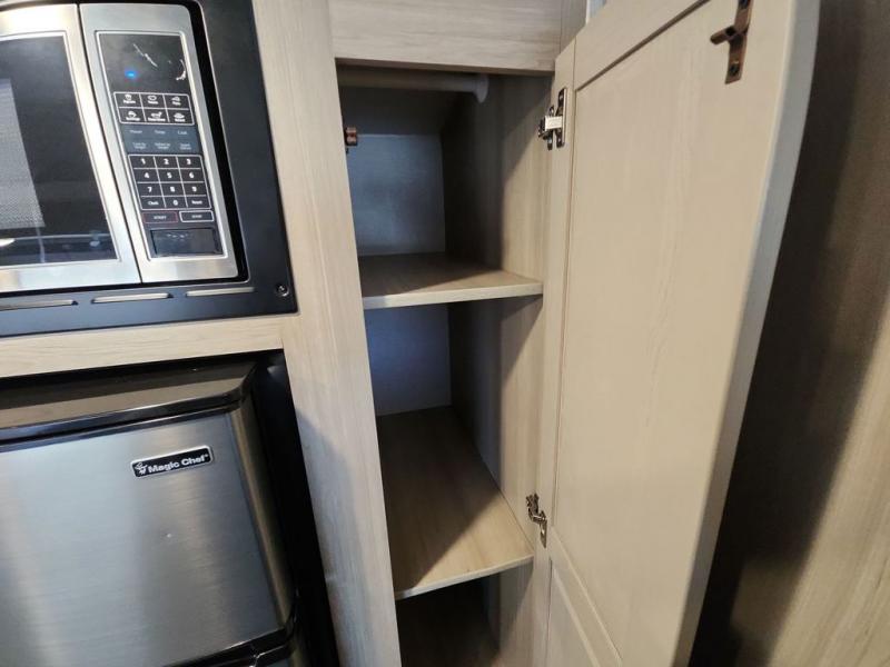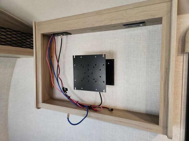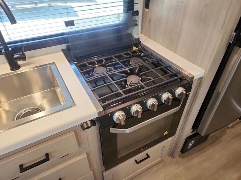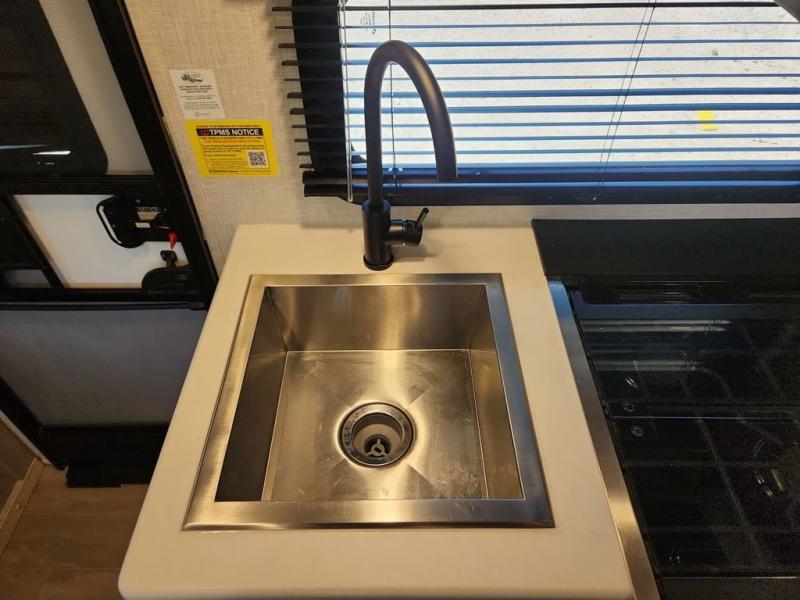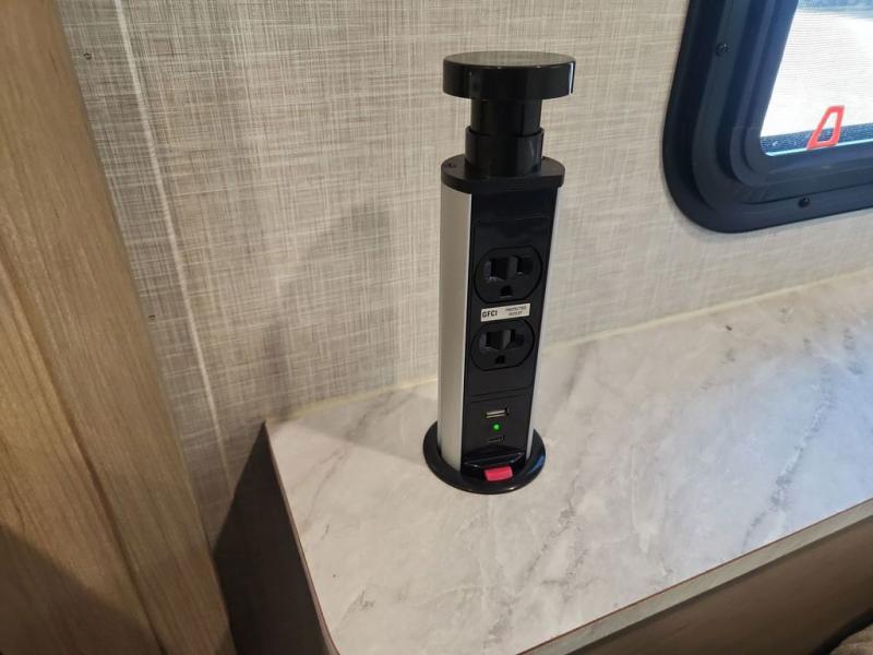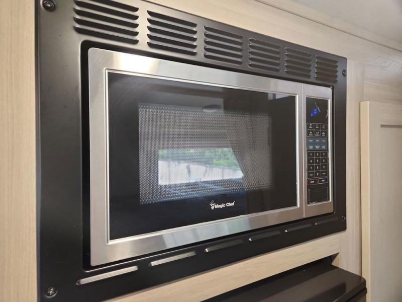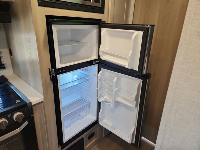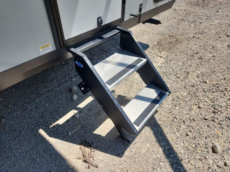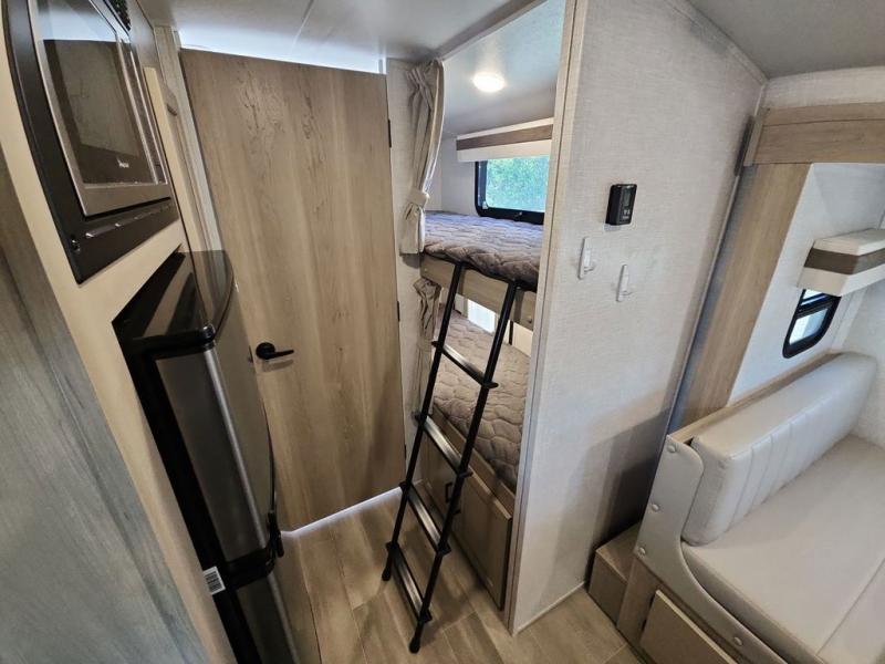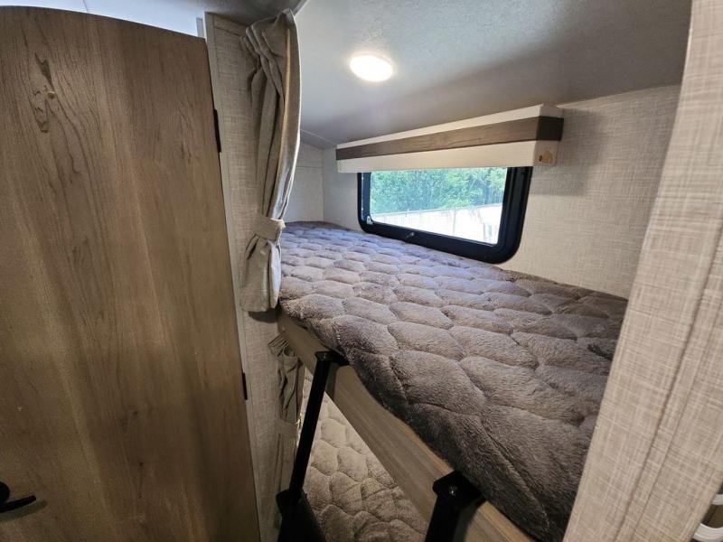 Your going to love camping with your family or friends in this largest bunk model in the GEO Pro lineup. The bunk beds will be perfect for little ones, while you take the front full-size bed. There is also a 44" booth dinette within the slide out for additional sleeping and seating space. The kitchen includes everything the chef will need to prepare meals each day, including a three burner cooktop, a microwave oven, and a 12V refrigerator for perishables. If the weather is nice, you may just find the chef outdoors cooking on the outside griddle under the 14' power awning. And check out the exterior bike door that will be perfect for bikes, luggage, or extra camp gear!