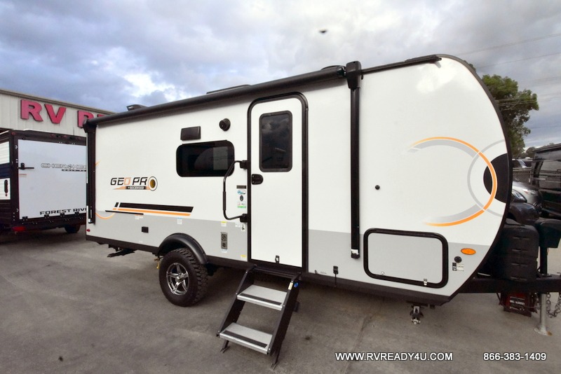 The Rockwood GEO Pro travel trailers and toy hauler by Forest River are ready for all your adventures. The interior and exterior Azdel construction, along with the vacuum laminated roof and walls provide a durable trailer, and the Dexter torsion axles with aluminum wheels make towing easier than ever. There are many convenient amenities, like the 13,500 BTU A/C, the Bluetooth system control panel, and the all-in-one Teton HD TV/WiFi/FM antenna with LTE prep. Each model includes frameless windows, fabric valances and roller shades, and a modern interior that will make you feel right at home. Everything you're looking for in your next RV is in a Rockwood GEO pro by Forest River!
