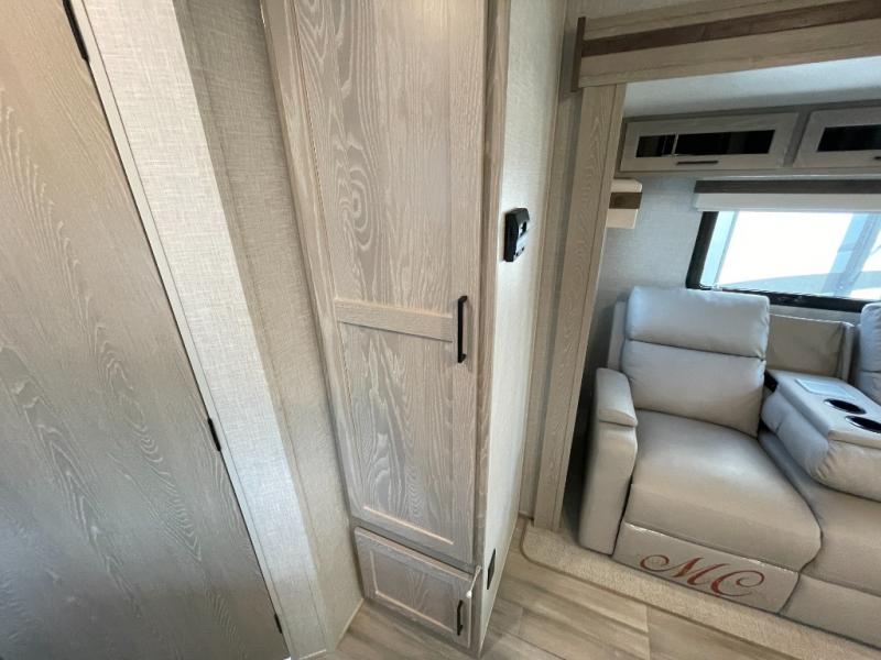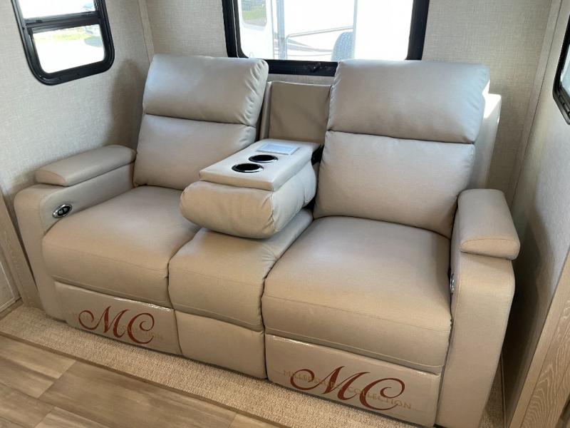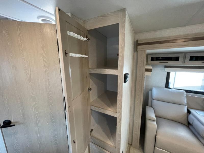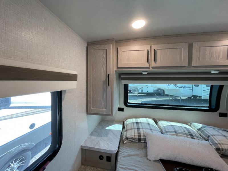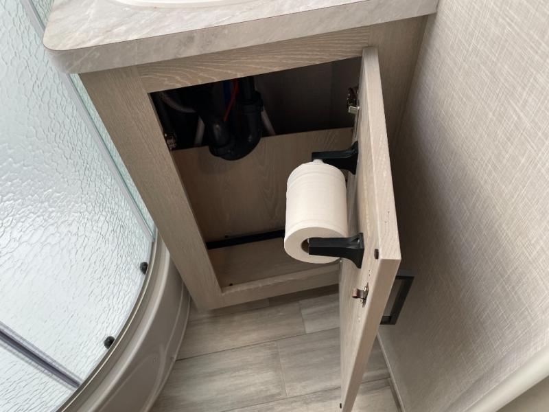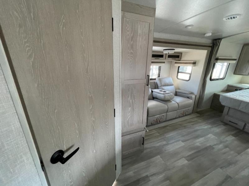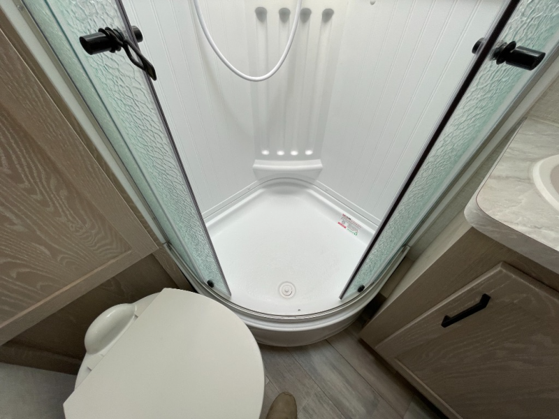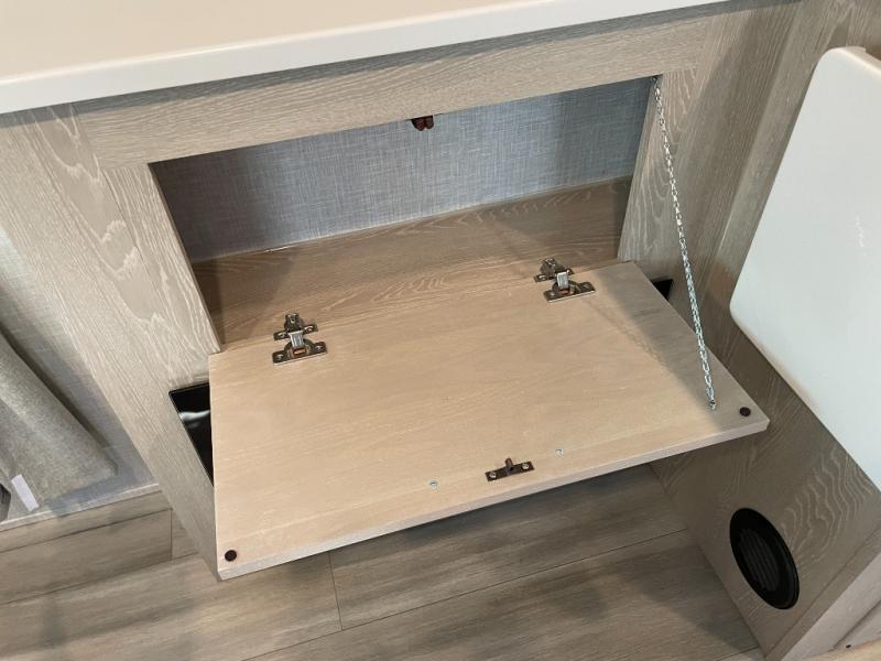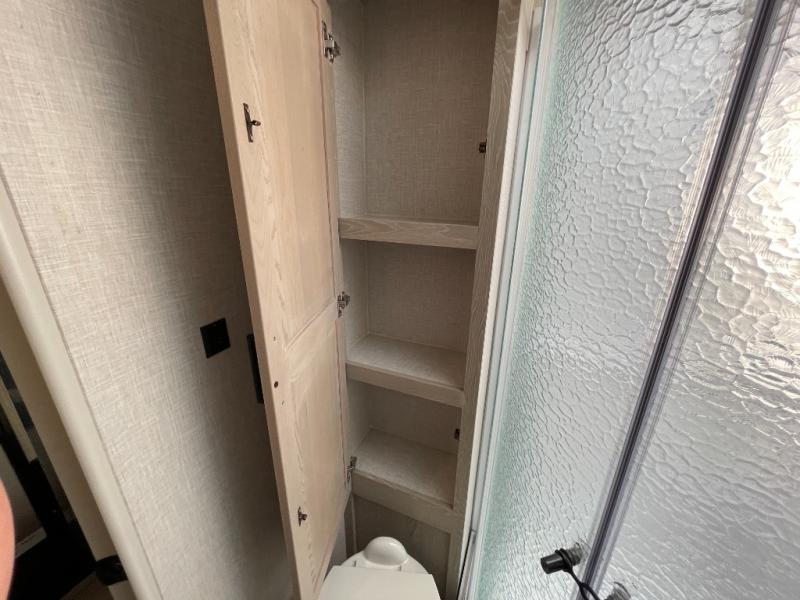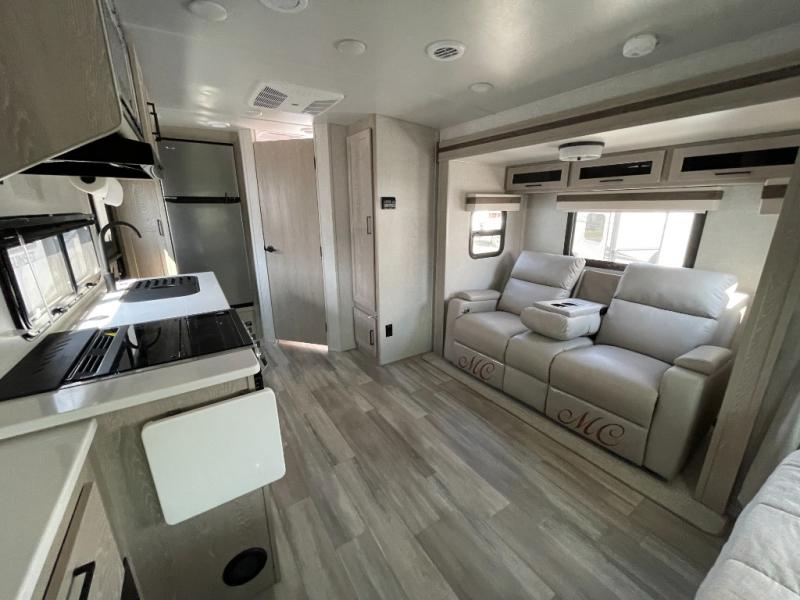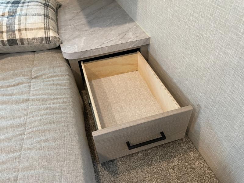 Enjoy camping season with your spouse, friend, or significant other in this cozy travel trailer for two. Each morning, you can have your coffee on the theater seats with a table within the slide out, then head outdoors to make pancakes on the outdoor griddle with an LP hookup. The interior kitchen includes a three burner cooktop, a microwave oven, plus a 12 volt refrigerator for perishables. An entertainment center with a fireplace will make your space feel more like home, and what's better than sleeping on your own queen bed with dual bedroom wardrobes for your clothes!?