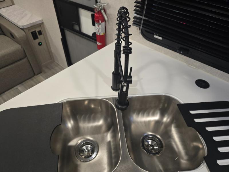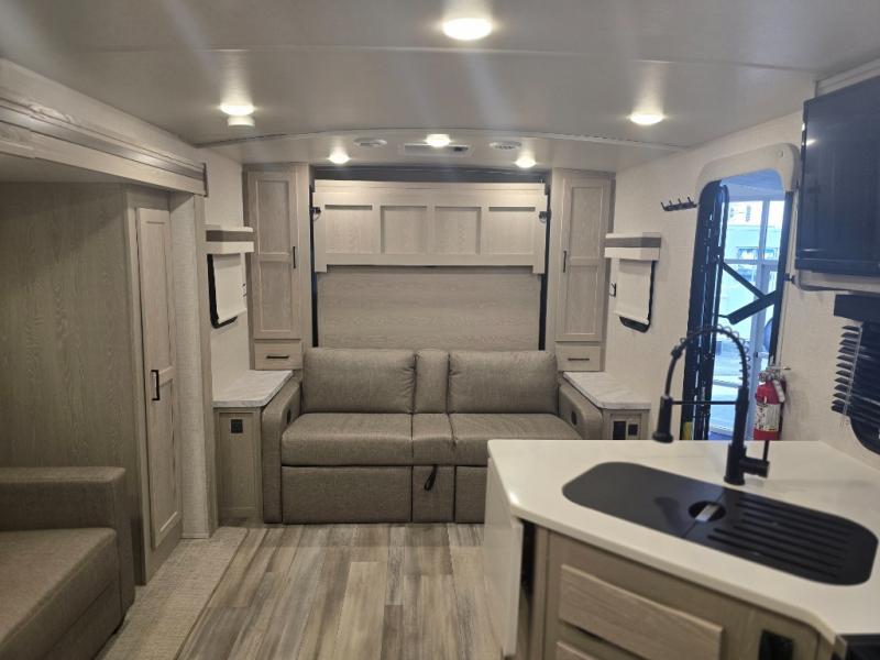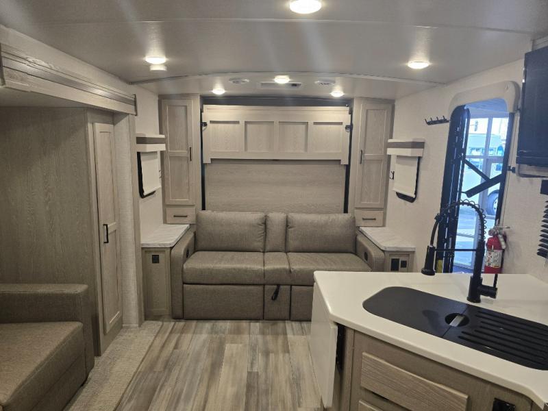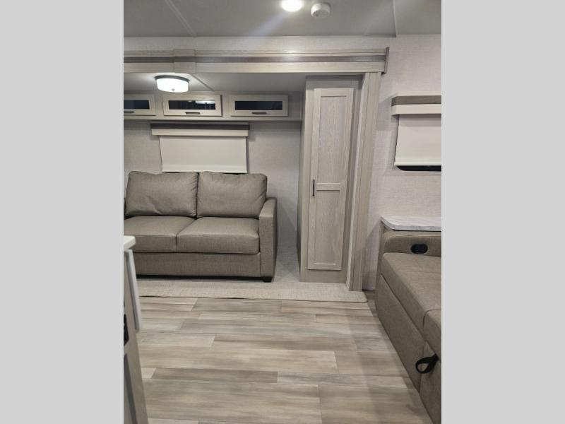 - Comfortable Living Area: Step inside to a welcoming living space featuring plush seating and a cozy atmosphere. The well-designed floor plan includes a slide-out that expands the interior, allowing for comfortable dining and relaxation after a day of adventure.