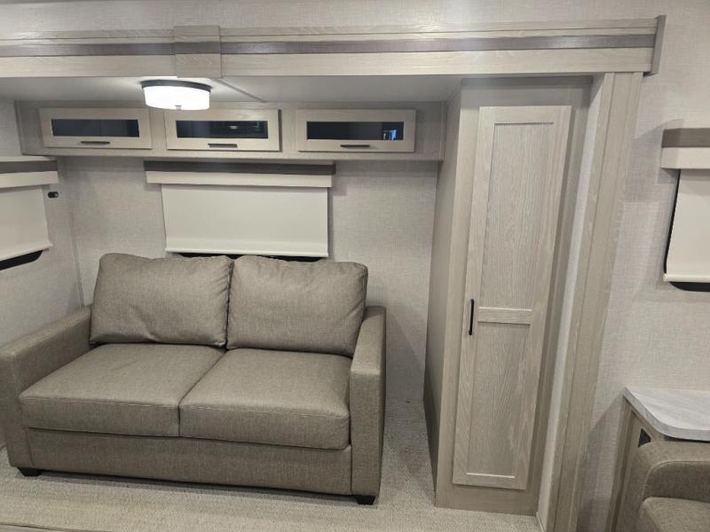 - Private Sleeping Quarters: Enjoy restful nights in the private bedroom, complete with a comfortable queen-sized bed. The convertible sofa and dinette also provide additional sleeping options for family or friends, ensuring everyone has a cozy spot to unwind.