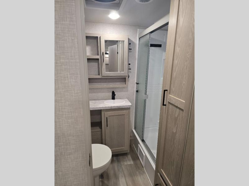 - Stylish Bathroom: The full bathroom features a spacious shower, toilet, and sink, providing all the comforts of home. You'll appreciate the convenience of having a dedicated space for personal care during your travels.