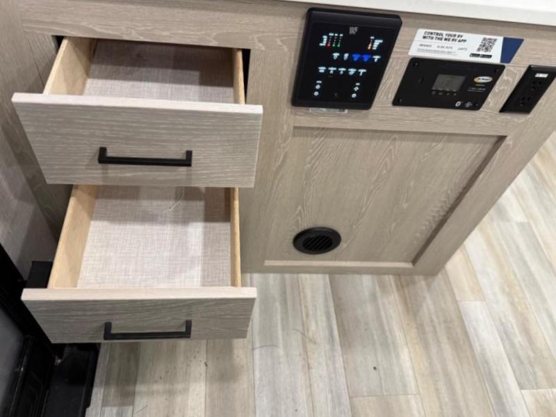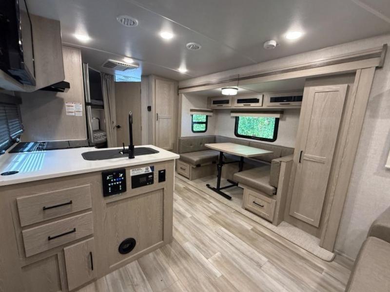 Finally, a lightweight travel trailer with double-size bunks for the kids or your guests! You'll find the versatile Murphy bed up front will be super convenient when you need more space to move around, and the 72" sofa will provide comfy seating space when the bed is put up. This model also includes a U-shaped dinette slide perfect to dine around, play games, and sleep additional guests. An LED TV in the main living area will allow you to watch your favorite shows in the evenings, or you may just find yourselves outdoors under the 18' power awning with LED lights. And check out the pass-through storage, plus additional exterior storage for your hiking gear!