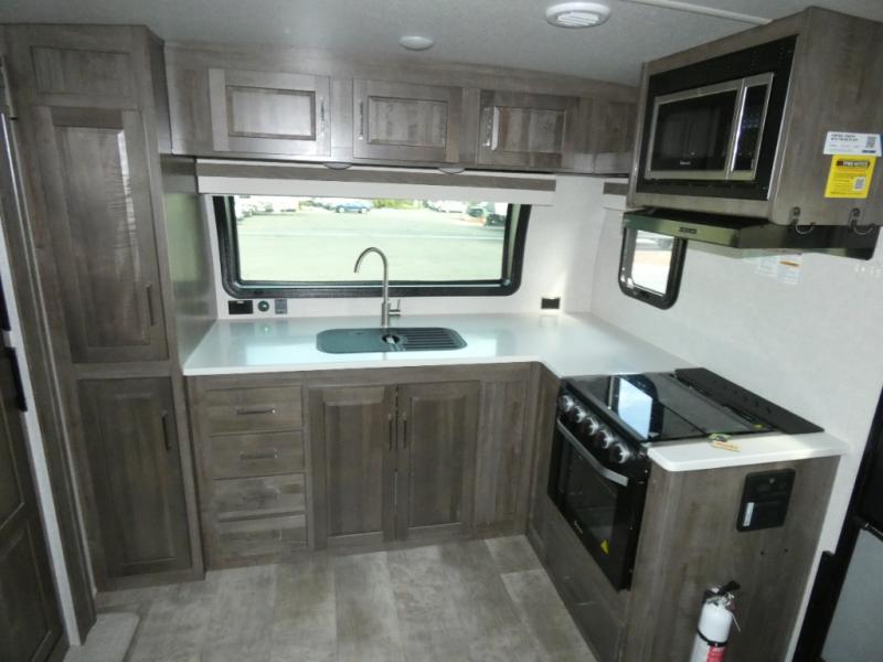 Each Rockwood Mini Lite travel trailer by Forest River is constructed with a fully laminated one-piece walkable roof, sleek frameless windows, and a six-sided full aluminum frame for strength and durability. The 12V thermostatically controlled heated tanks, plus radiant foil in the underbelly, front caps, and slide out floors will allow you to camp well into the colder months, and the 200W roof solar panel will be perfect for a little off-gridding. Each model includes solid surface kitchen countertops, solid wood cabinet doors, night roller shades, plus many more interior features. Having a Teton all in one Wi-Fi booster/LTE prep and antenna on board will allow you to get some work done if it's needed, and the power tongue jack provides hassle-free set up, so you can enjoy more time relaxing!