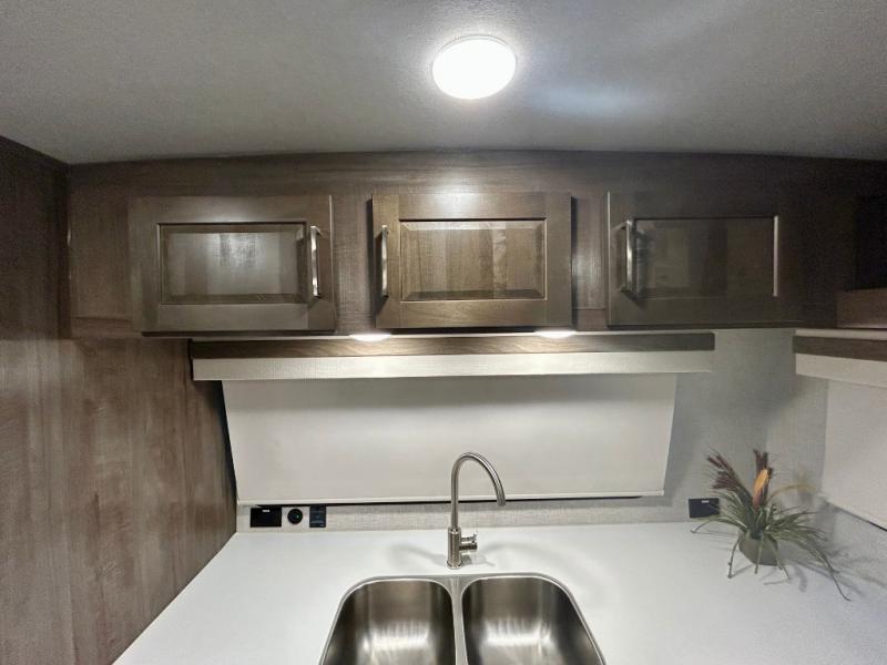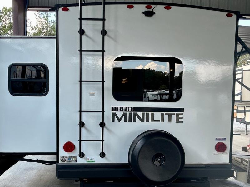 Each Rockwood Mini Lite travel trailer by Forest River is constructed with a fully laminated one-piece walkable roof, sleek frameless windows, and a six-sided full aluminum frame for strength and durability. The 12V thermostatically controlled heated tanks, plus radiant foil in the underbelly, front caps, and slide out floors will allow you to camp well into the colder months, and the 200W roof solar panel will be perfect for a little off-gridding. Each model includes solid surface kitchen countertops, solid wood cabinet doors, night roller shades, plus many more interior features. Having a Teton all in one Wi-Fi booster/LTE prep and antenna on board will allow you to get some work done if it's needed, and the power tongue jack provides hassle-free set up, so you can enjoy more time relaxing!