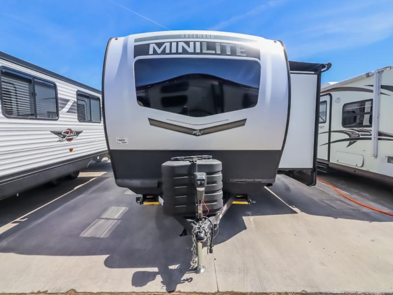Each Rockwood Mini Lite travel trailer by Forest River is constructed with a fully laminated one-piece walkable roof, sleek frameless windows, and a six-sided full aluminum frame for strength and durability. The 12V thermostatically controlled heated tanks, plus radiant foil in the underbelly, front caps, and slide out floors will allow you to camp well into the colder months, and the 200W roof solar panel will be perfect for a little off-gridding. Each model includes solid surface kitchen countertops, solid wood cabinet doors, night roller shades, plus many more interior features. Having a Teton all in one Wi-Fi booster/LTE prep and antenna on board will allow you to get some work done if it's needed, and the power tongue jack provides hassle-free set up, so you can enjoy more time relaxing!