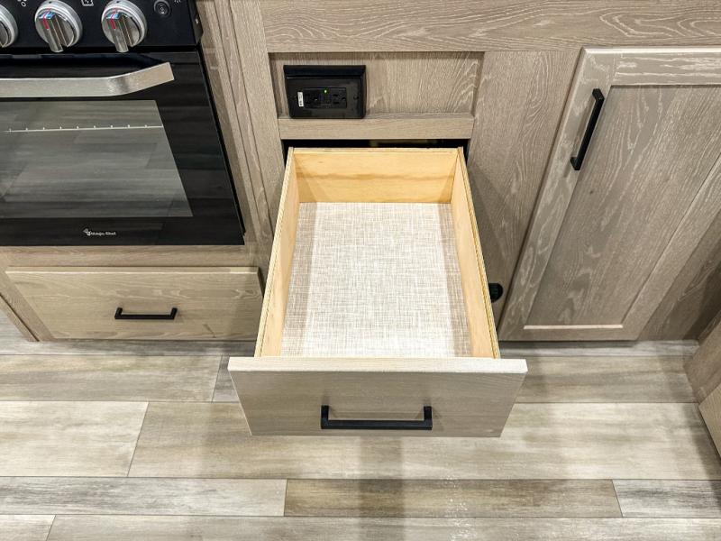 With any Rockwood Signature fifth wheel or travel trailer by Forest River RV, the superior construction includes white or champagne fiberglass sidewalls, a one piece seamless roof membrane, 6-sided aluminum framed walls, floors and roof, plus radiant foil insulation and an enclosed underbelly for use in all types of weather. Some safety standards include Dexter torsion axles, MORryde strut assist steps, and the TST tire pressure monitor system. The interior offers a One Touch OneControl panel with WeRV app control, for lights, awning, slides, water heater and more. You will also appreciate the interior vaulted ceilings, residential soft close doors and drawers, plus solid surface kitchen countertops, a designer kitchen backsplash, plus many more features depending on which Rockwood Signature unit you choose!