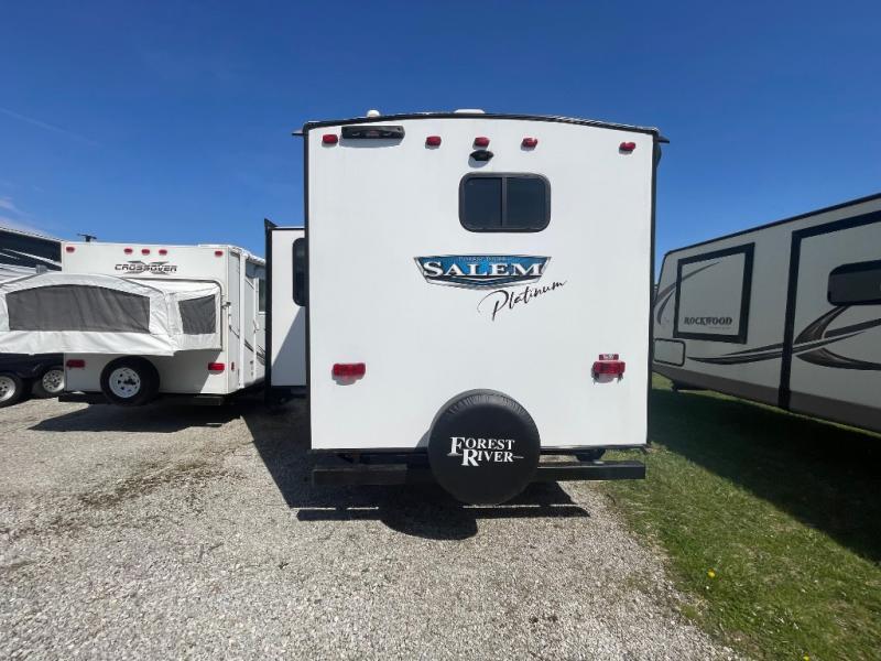 Enjoy years and years of memories with any one of these Forest River Salem travel trailers! They are built with a one piece, SuperFlex roof, a powder coated I-beam frame, and an aerodynamic front radius profile for an easier tow. The triple seal slide out system prevents water from seeping inside and keeps it outside where it belongs. The Best In Class Value Package includes upgraded designer furniture, seamless countertops with no T-mold, and two zone residential soundbars with FM, Bluetooth, HDMI and USB. You will also appreciate the heated and enclosed Accessi-Belly with removable underbelly panels, the power tongue jack with an LED light, and the designated CPAP storage. Some new upgraded features include: kitchen backsplash, fireplaces with mirror fronts, bedroom bedding, 12V refrigerator, now with glass doors, and so much more!