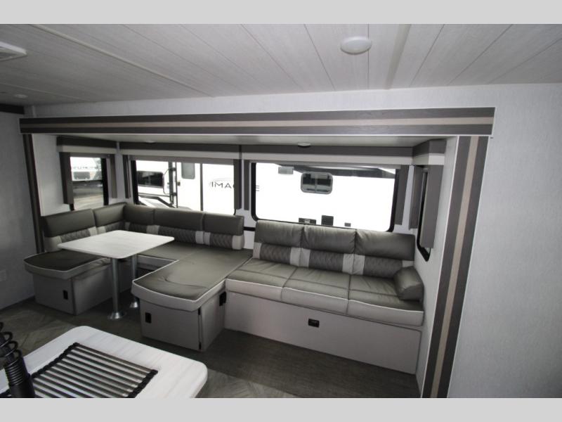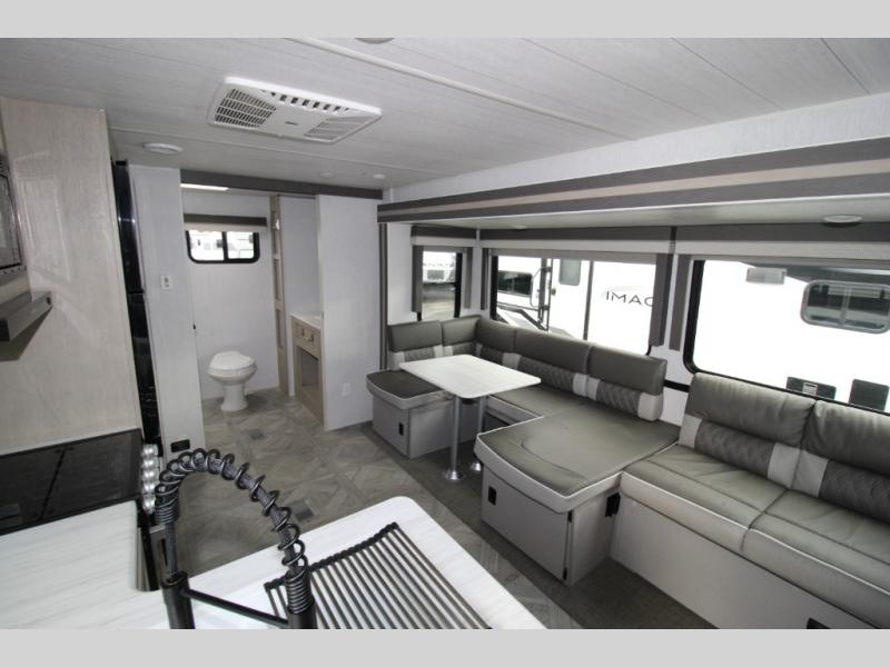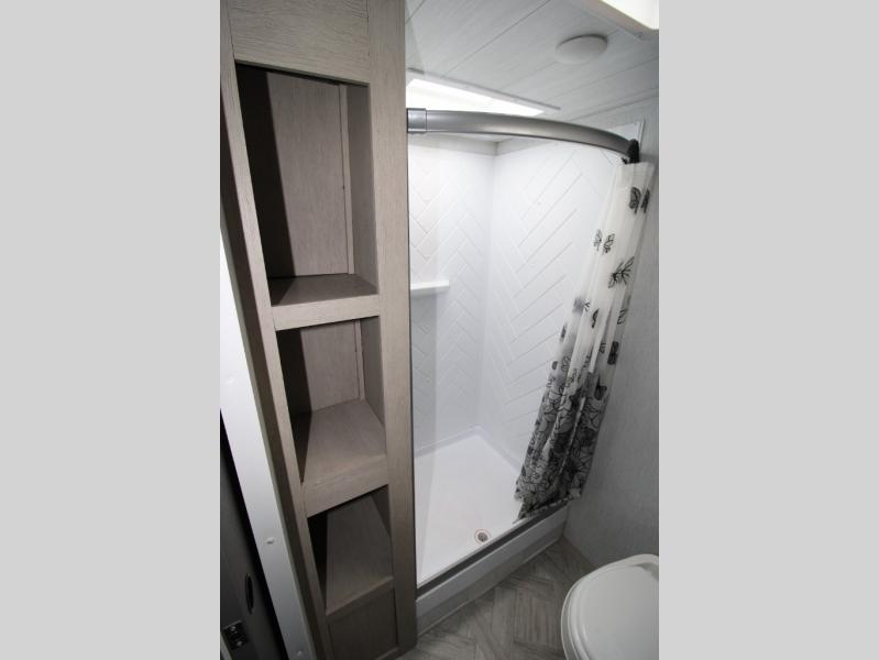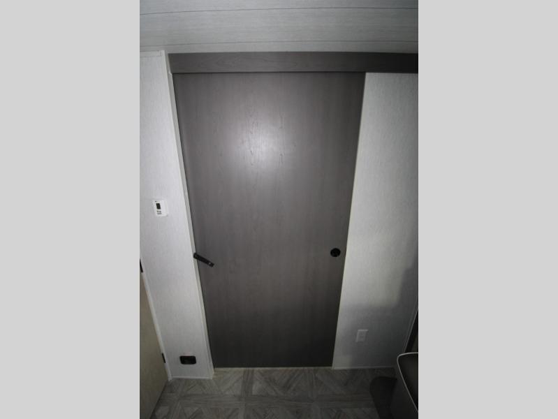 You will enjoy sleeping for up to six with a custom king bed in the private front bedroom, plus a versa-lounge and a u-shaped dinette within the large slide out. There are also panoramic windows here to let tons of natural light in. Cooking will be easy either indoors or outdoors with an exterior camp kitchen situated under the 20' awning, and the two pantries and an oversized fridge inside will hold all of your food. You will feel right at home in the front private bedroom that includes a custom king bed, dual nightstands and closets, plus a walk-in closet to keep your clothes wrinkle-free. And check out the pass-through storage outside to keep fishing poles, hiking gear, and extra lawn chairs!