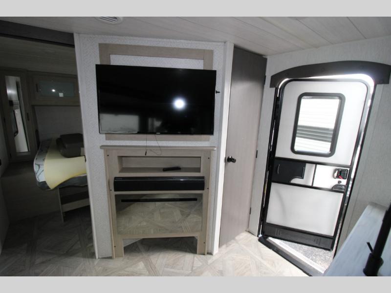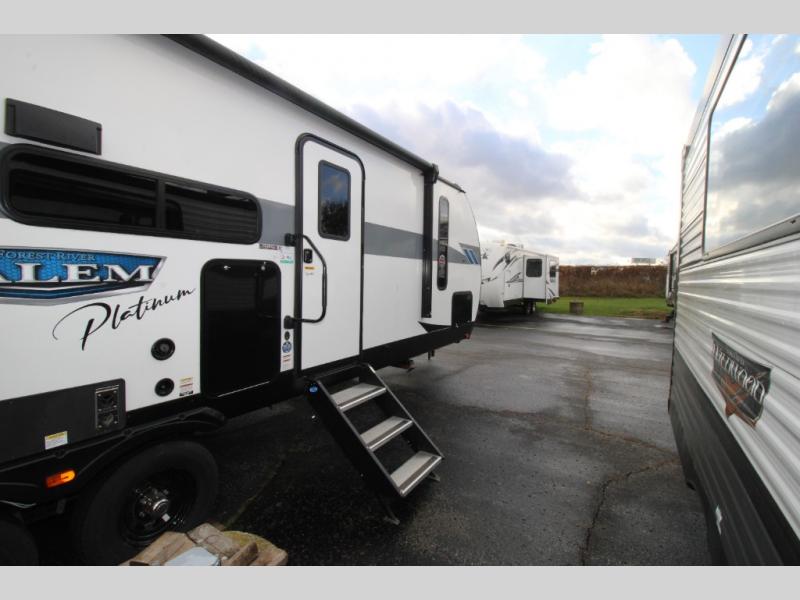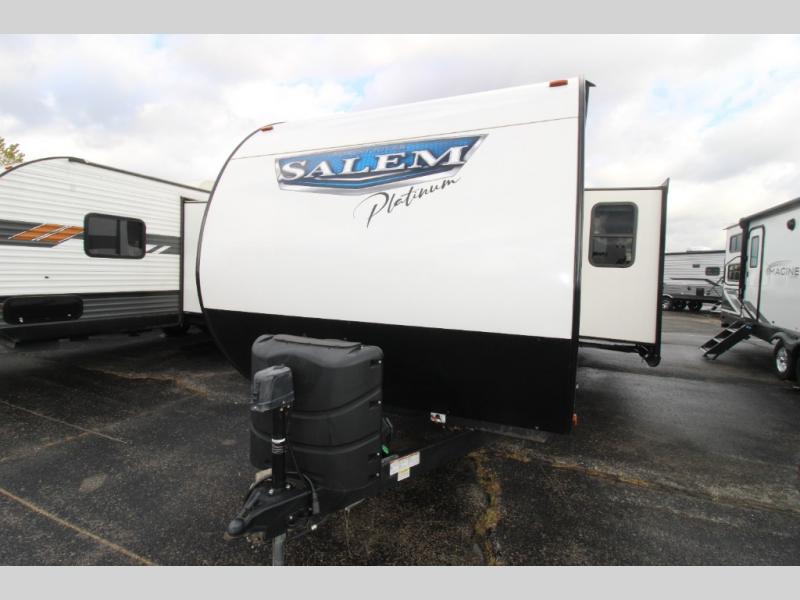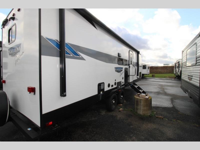 Enjoy years and years of memories with any one of these Forest River Salem travel trailers! They are built with a one piece, SuperFlex roof, a powder coated I-beam frame, and an aerodynamic front radius profile for an easier tow. The triple seal slide out system prevents water from seeping inside and keeps it outside where it belongs. The Best In Class Value Package includes upgraded designer furniture, seamless countertops with no T-mold, and two zone residential soundbars with FM, Bluetooth, HDMI and USB. You will also appreciate the heated and enclosed Accessi-Belly with removable underbelly panels, the power tongue jack with an LED light, the designated CPAP storage. Some new upgraded features include: kitchen backsplash, fireplaces with mirror fronts, bedroom bedding, 12V refrigerator, now with glass doors, and so much more!