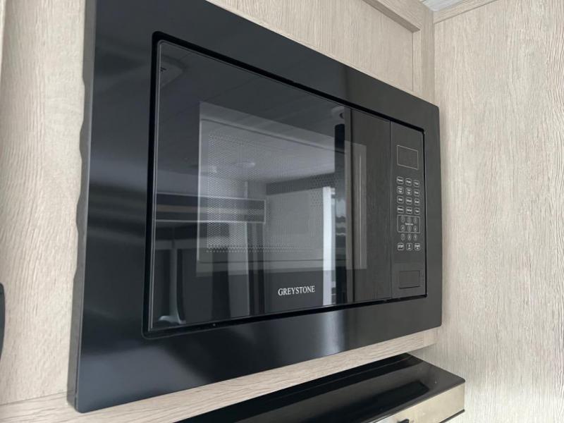 You will enjoy sleeping for up to six with a custom king bed in the private front bedroom, plus a versa-lounge and a u-shaped dinette within the large slide out. There are also panoramic windows here to let tons of natural light in. Cooking will be easy either indoors or outdoors with an exterior camp kitchen situated under the 20' awning, and the two pantries and an oversized fridge inside will hold all of your food. You will feel right at home in the front private bedroom that includes a custom king bed, dual nightstands and closets, plus a walk-in closet to keep your clothes wrinkle-free. And check out the pass-through storage outside to keep fishing poles, hiking gear, and extra lawn chairs!