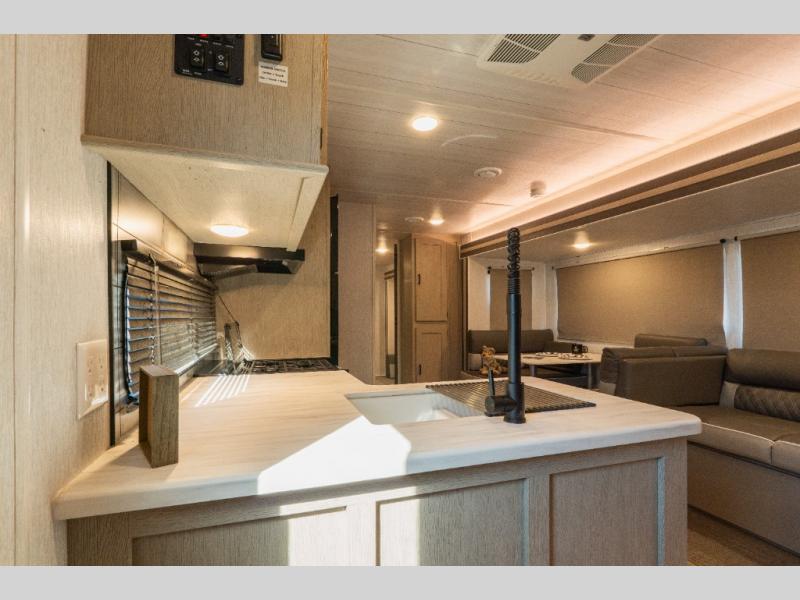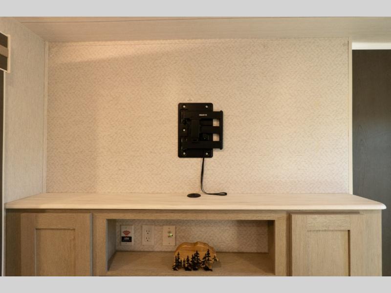 Enjoy years and years of memories with any one of these Forest River Salem travel trailers! They are built with a one piece SuperFlex roof, a powder coated I-beam frame, and an aerodynamic front radius profile for an easier tow. The triple seal slide out system prevents water from seeping inside and keeps it outside where it belongs. The Salem Best In Class Value Package includes upgraded designer furniture, seamless countertops with no T-mold, and two zone residential soundbars with FM, Bluetooth, HDMI and USB. You will also appreciate the heated and enclosed Accessi-Belly with removable underbelly panels, the power tongue jack with an LED light, and the designated CPAP storage. Some new upgraded features include: kitchen backsplash, fireplaces with mirror fronts, bedroom bedding, 12V refrigerator, now with glass doors, and so much more!