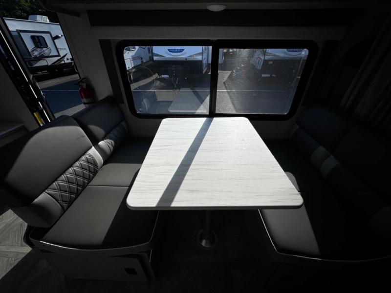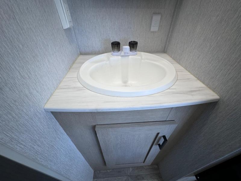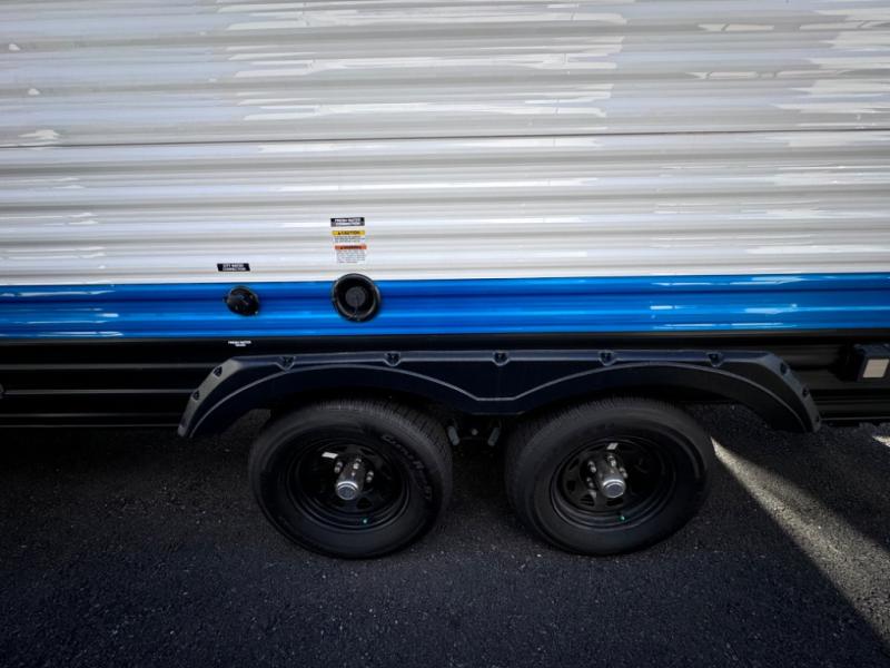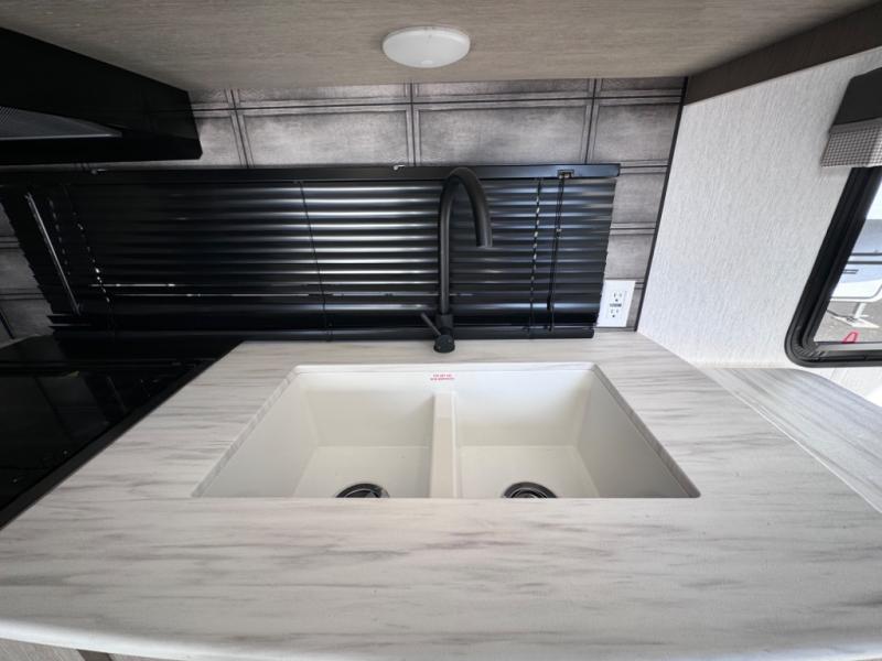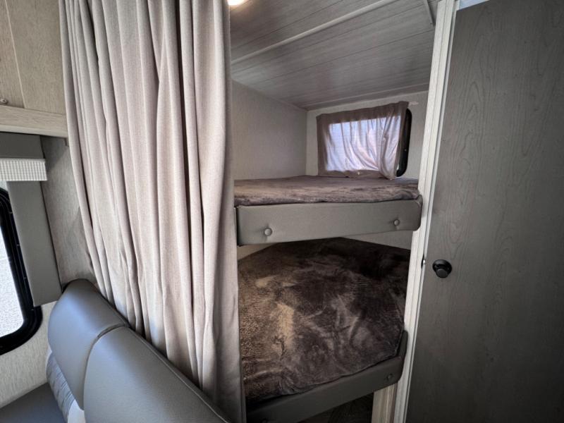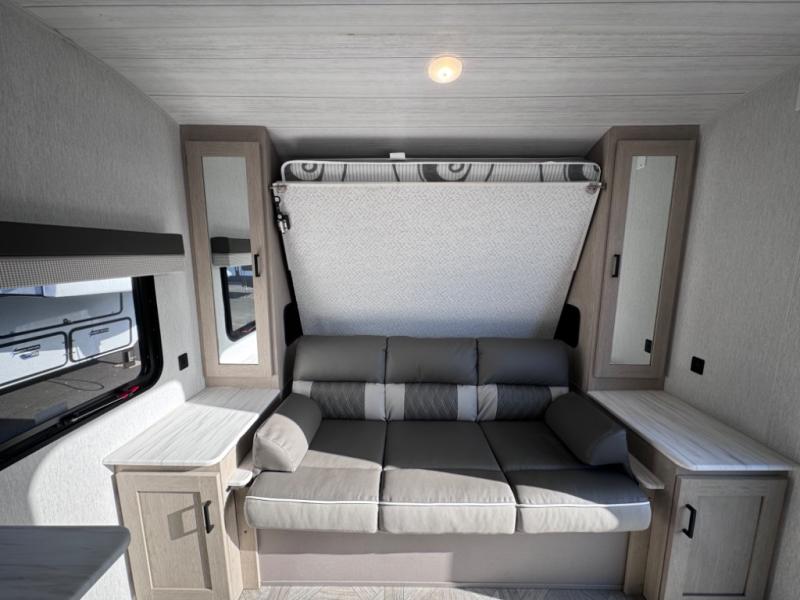 If you're looking for a bunkhouse travel trailer that weighs less than 5,000 lbs. then look no farther! Everyone can freshen up each morning in the rear corner bathroom with the walk-in shower with a skylight above for added natural lighting. The kids can sleep on the 48" x 74" double-size bunk beds and you can sleep on the front Murphy bed which has an Easy Bed lift system. The booth dinette can also transform into an extra sleeping space when you're not using it to enjoy your meals or playing card games. You might even like to add the optional outside kitchen if you enjoy breakfast outdoors!