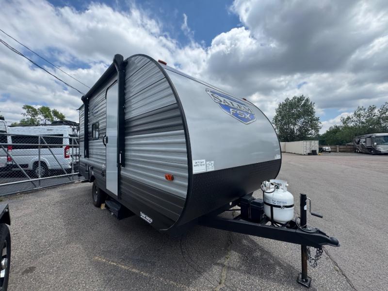 The Forest River Salem FSX travel trailers and toy hauler travel trailers are ultra comfortable and lightweight, perfect for first time or seasoned campers alike! You will love how easy it will be to relax with residential features that will make your space feel just like home, and the durable construction means you can enjoy your RV for years to come. There are a wide variety of floorplans to choose from, including couple's trailers, bunk models, and toy haulers, all with full bath and kitchen amenities and plenty of storage for all your gear!