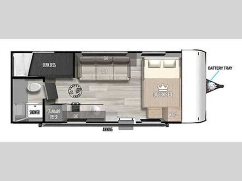 Camping is made easy in this Limited Edition Value trailer that can sleep five to six each night thanks to the bunk beds, front queen bed, and sofa! There is a private shower and toilet so you can freshen up each day, and a kitchen with a two burner cooktop to make meals. You will appreciate the 5,000 BTU fireplace for heating, the 13,500 BUT roof mounted A/C to keep you cool all summer long, and the DSI water heater for hot water when you need it. You will also find a large baggage door for exterior storage, a powder coated I-beam chassis for durability, plus backup camera prep to make parking easier!
