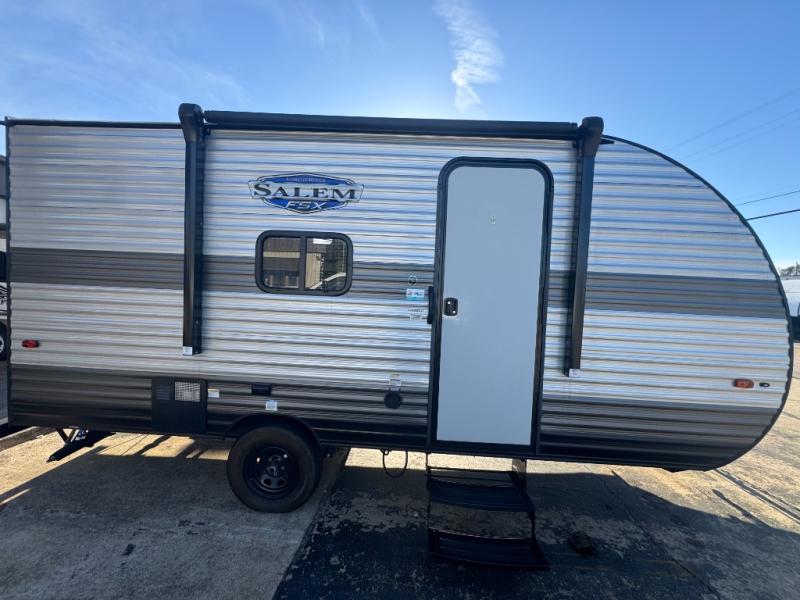 The Forest River Salem FSX travel trailers and toy hauler travel trailers are ultra comfortable and lightweight, perfect for first time or seasoned campers alike! You will love how easy it will be to relax with residential features that will make your space feel just like home, and the durable construction means you can enjoy your RV for years to come. There are a wide variety of floorplans to choose from, including couple's trailers, bunk models, and toy haulers, all with full bath and kitchen amenities and plenty of storage for all your gear!