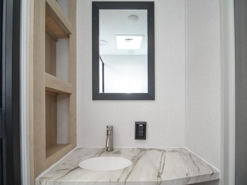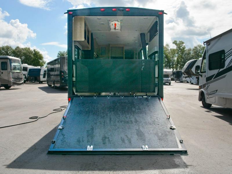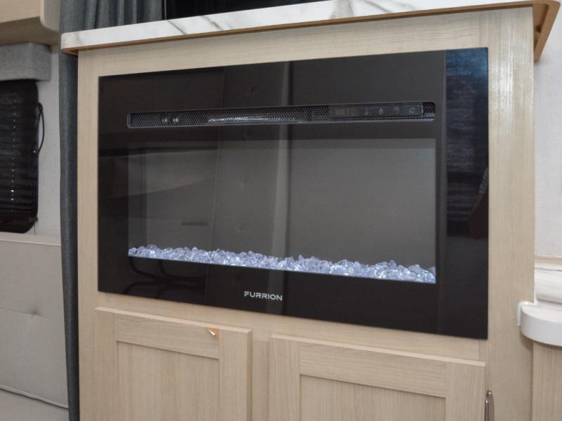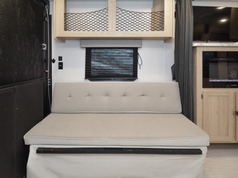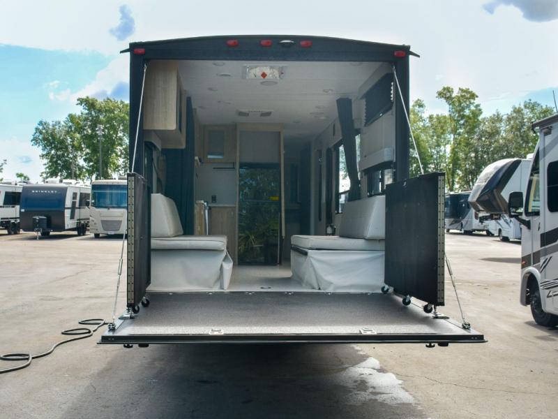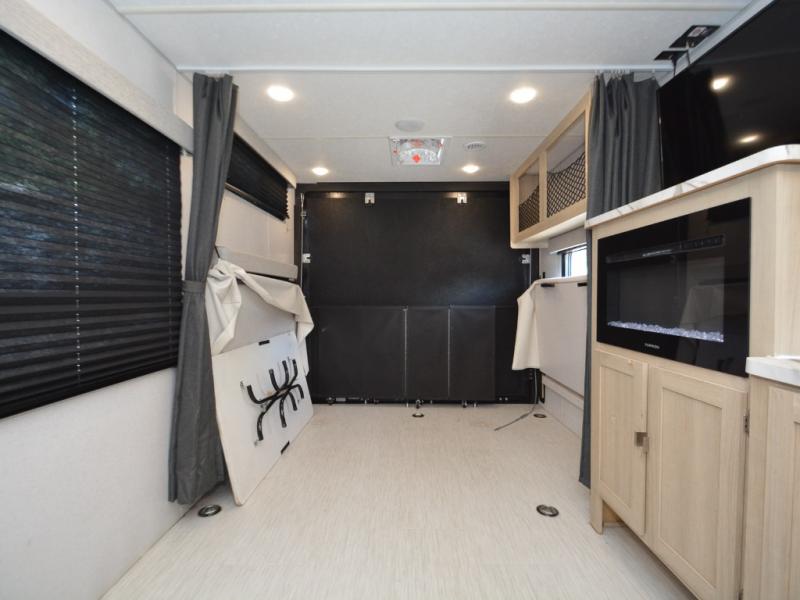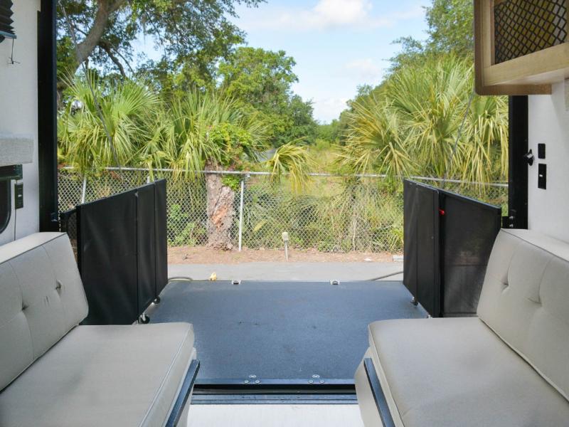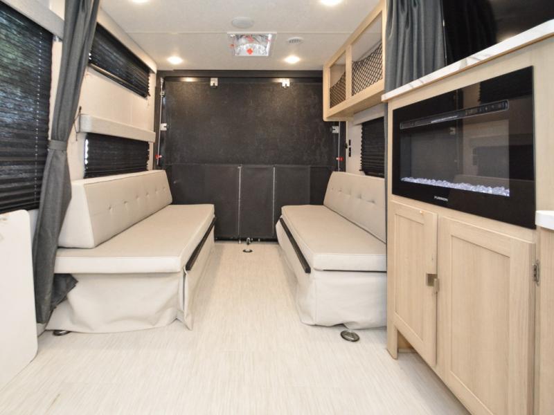 Make the most of your vacations with this MAX toy hauler! The 14' garage area includes dual sofas plus a 3,000 lb. ramp door that doubles as a patio to enjoy cool summer evenings. When the weather turns cooler, enjoy cozy nights indoors with a toasty fireplace while cooking dinner on the three burner cooktop plus a microwave for leftovers. After a fun day of trail riding, you can freshen up in the full bath with a 30" x 36" shower before heading up to the private bedroom featuring a queen bed with storage underneath, two shirt wardrobes, and a closet at the foot of the bed.