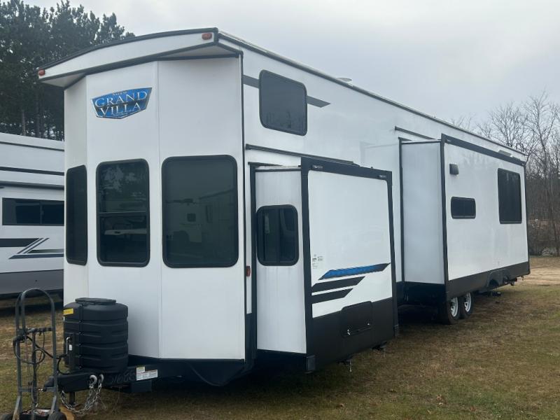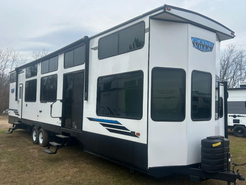 You will experience a home away from home with any one of these Forest River Salem Grand Villa destination trailers! Their construction consists of a 12" forged I-beam frame, a cambered chassis, and plywood floor decking, as well as 5" bowed truss roof rafters, 3/8" roof decking, and color coded water lines to make life easier. The one-piece, seamless slides and 106" interior living room height makes for more walking around space. A Best in Class Value package includes upgraded designer furniture, a central vacuum with sweep attachment, and stainless steel kitchen appliances to keep your bellies full. Plus, it has a heated and enclosed Accesssi-Belly with removable panels and an exterior LED light strip under the awning. Come choose your favorite model today!