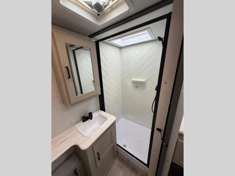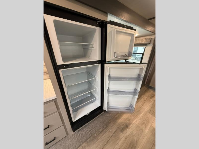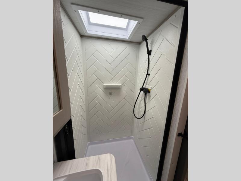 You will experience better gas mileage and a smoother ride with any one of these Forest River Salem Hemisphere Hyper-Lyte travel trailers! The stunning interiors include European Oak colored horizontal plank flooring for an easy clean up, beautiful saddle colored wood cabinetry, and matte black cabinet hardware. With a high efficiency A/C cooling system, you can be sure to stay cool even on the hottest summer day. The mandatory Upgraded Options package includes an outside shower to rinse the mud off before entering, a central switch center, and an ivory performance colored exterior fiberglass with smoked quartz metallic accents to turn heads while at the campsite!