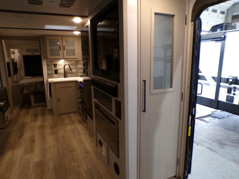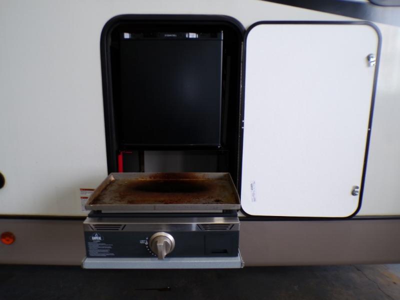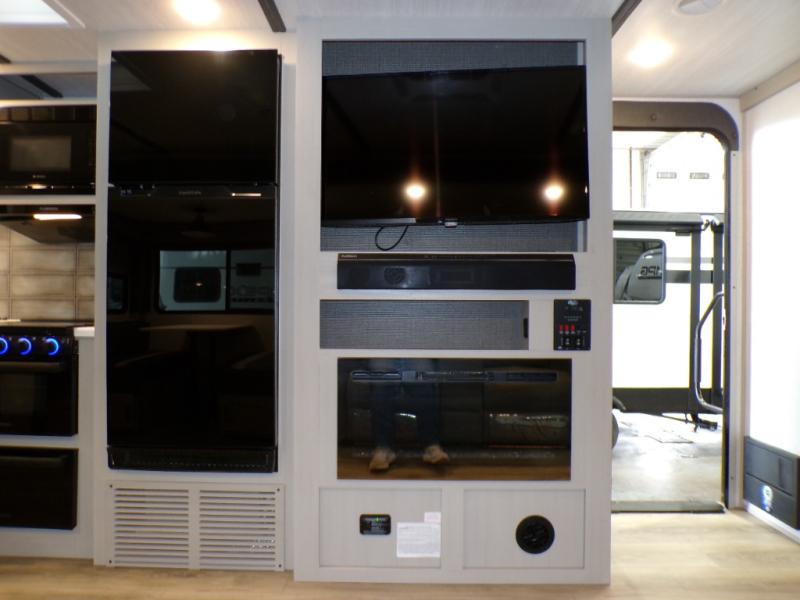 Once you step inside this spacious Salem Hemisphere Hyper-Lyte travel trailer, you'll want to take it out every other weekend for fun with your friends or family! The large slide out opens up the living and kitchen area and allows everyone to move around freely. The chef of the family can prepare dinner on the three-burner range, and they'll love having a walk-in pantry to store all the canned goods. After a day at the lake, get cleaned up in the full rear bath before heading to the living area to relax on the theater seating while you watch a show on the 40" LED TV with fireplace below. This trailer includes a front private bedroom with an RV queen bed and space to walk around the bed. You can easily store all your hiking gear in the Texas sized pass-through storage, and cold drinks can go in the outdoor fridge!