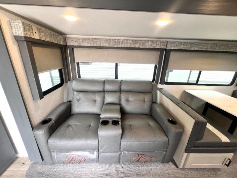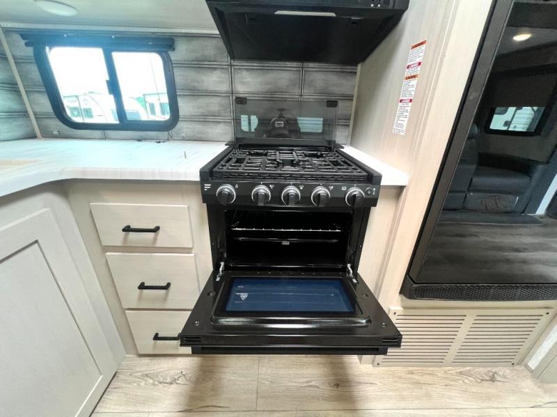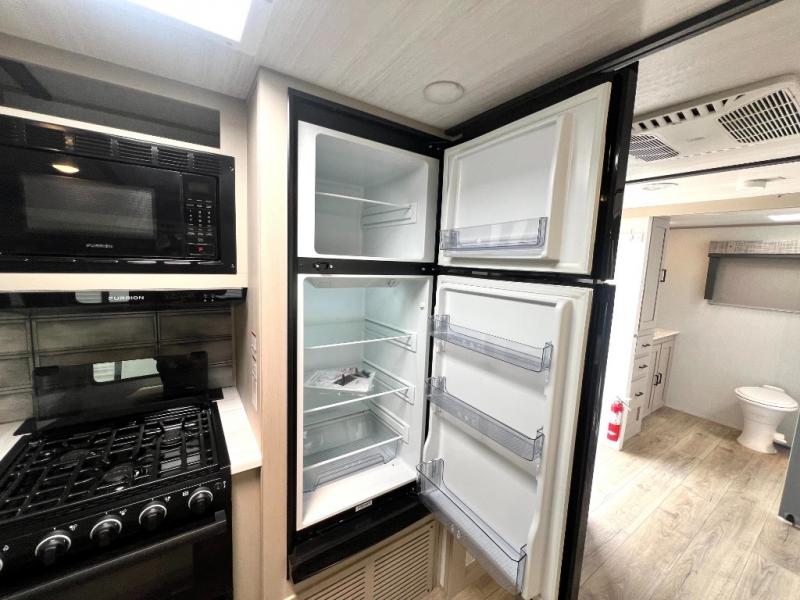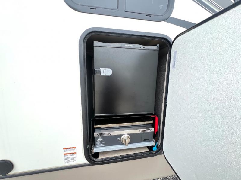 Once you step inside this spacious Salem Hemisphere Hyper-Lyte travel trailer, you'll want to take it out every other weekend for fun with your friends or family! The large slide out opens up the living and kitchen area and allows everyone to move around freely. The chef of the family can prepare dinner on the three-burner range, and they'll love having a walk-in pantry to store all the canned goods. After a day at the lake, get cleaned up in the full rear bath before heading to the living area to relax on the theater seating while you watch a show on the 40" LED TV with fireplace below. This trailer includes a front private bedroom with an RV queen bed and space to walk around the bed. You can easily store all your hiking gear in the Texas sized pass-through storage, and cold drinks can go in the outdoor fridge!