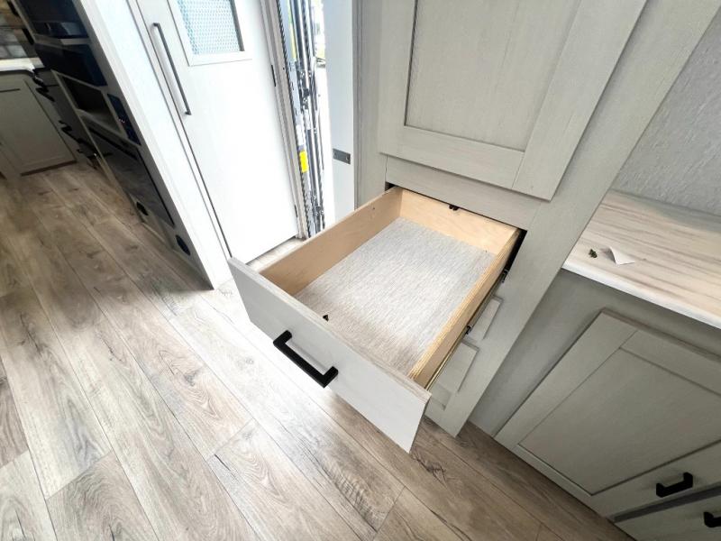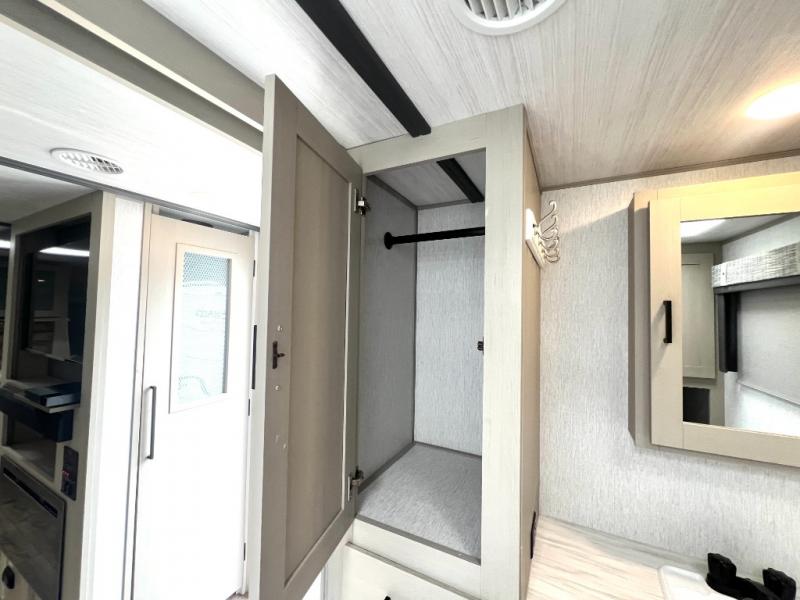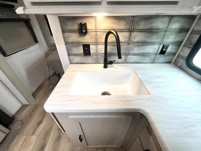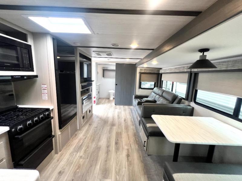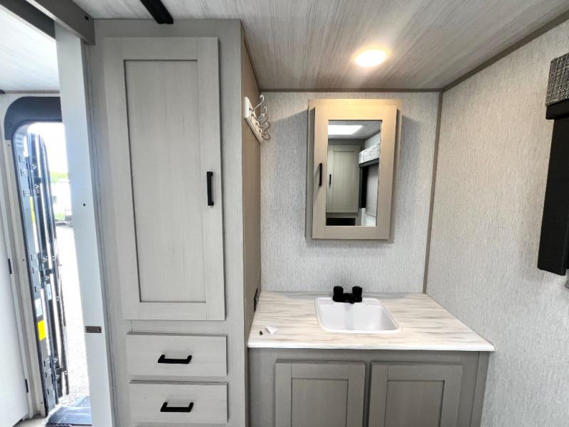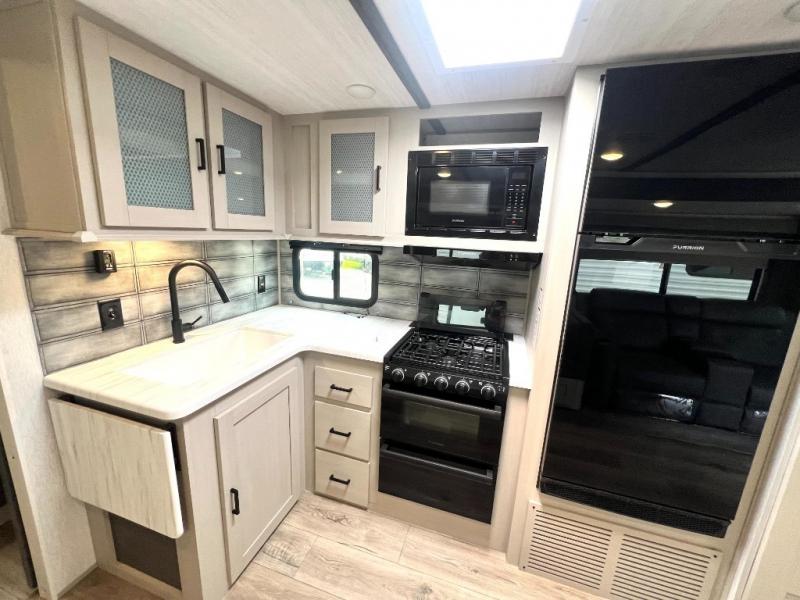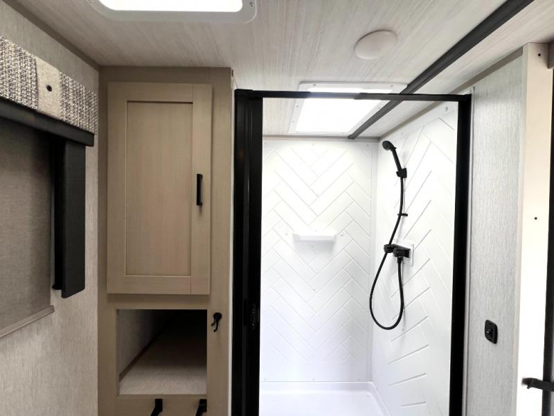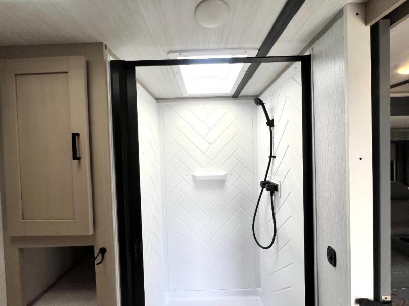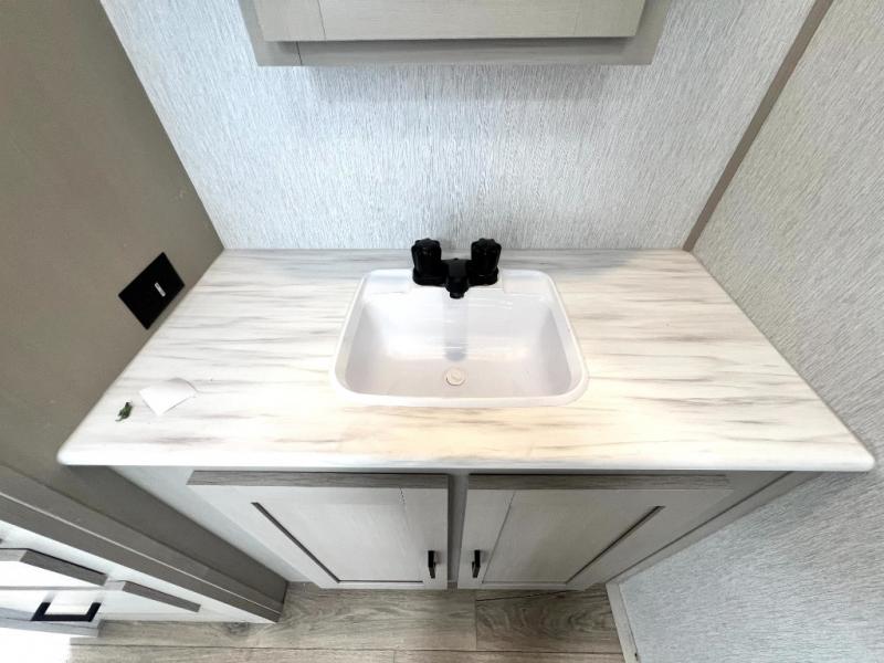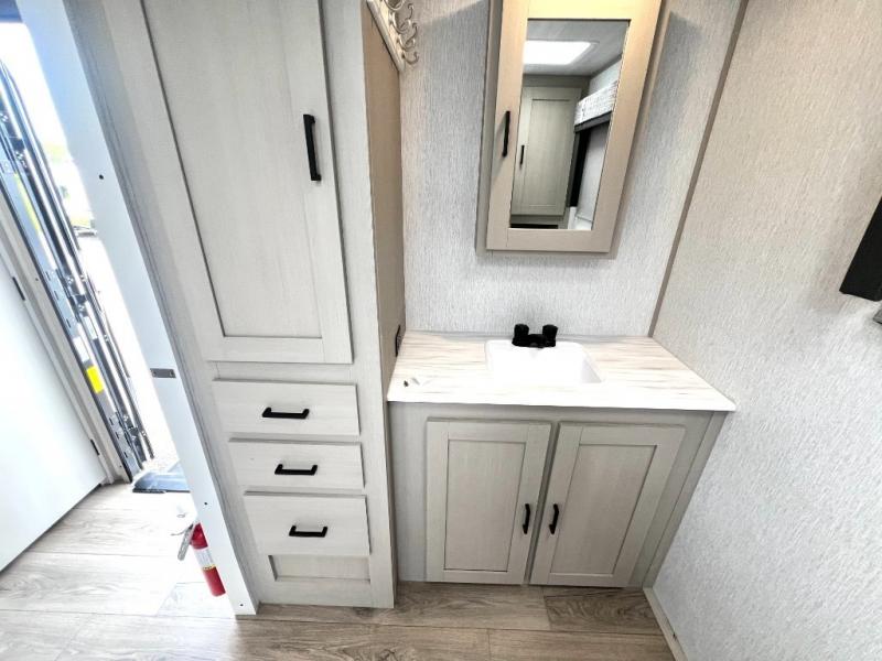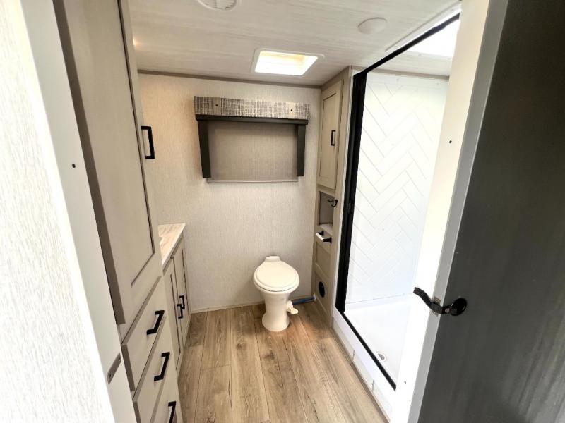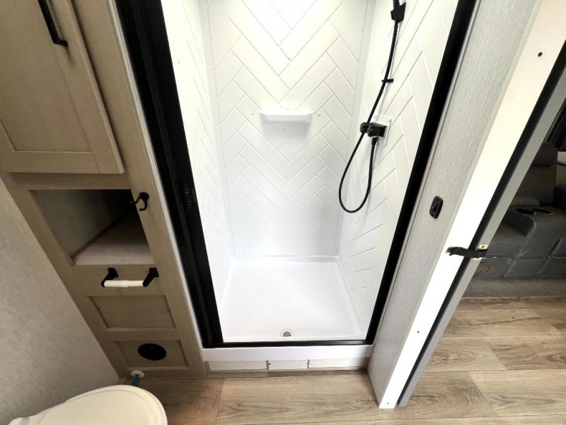 You will experience better gas mileage and a smoother ride with any one of these Forest River Salem Hemisphere Hyper-Lyte travel trailers! The stunning interiors include European Oak colored horizontal plank flooring for an easy clean up, beautiful saddle colored wood cabinetry, and matte black cabinet hardware. With a high efficiency A/C cooling system, you can be sure to stay cool even on the hottest summer day. The mandatory Upgraded Options package includes an outside shower to rinse the mud off before entering, a central switch center, and an ivory performance colored exterior fiberglass with smoked quartz metallic accents to turn heads while at the campsite!