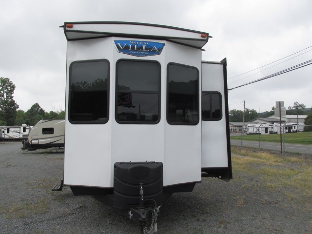 The Forest River Salem Villa Series destination trailer offers you an excellent space to relax in and rejuvenate your adventurous spirit! The construction has been built with 2" wall studs, 5" bowed truss roof rafters, 3/8" walk-on roof decking, and fiberglass insulation throughout. The 8' interior height is going to provide you with an open and spacious living area, and the heated and enclosed accessi-belly will protect your trailer from the elements. The Salem Villa Series comes loaded with upgraded designer furniture, a Serta mattress, stainless steel appliances, seamless countertops, and extra-large windows in the main slide with cross ventilation.