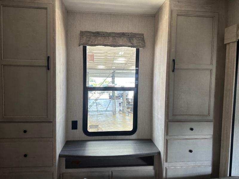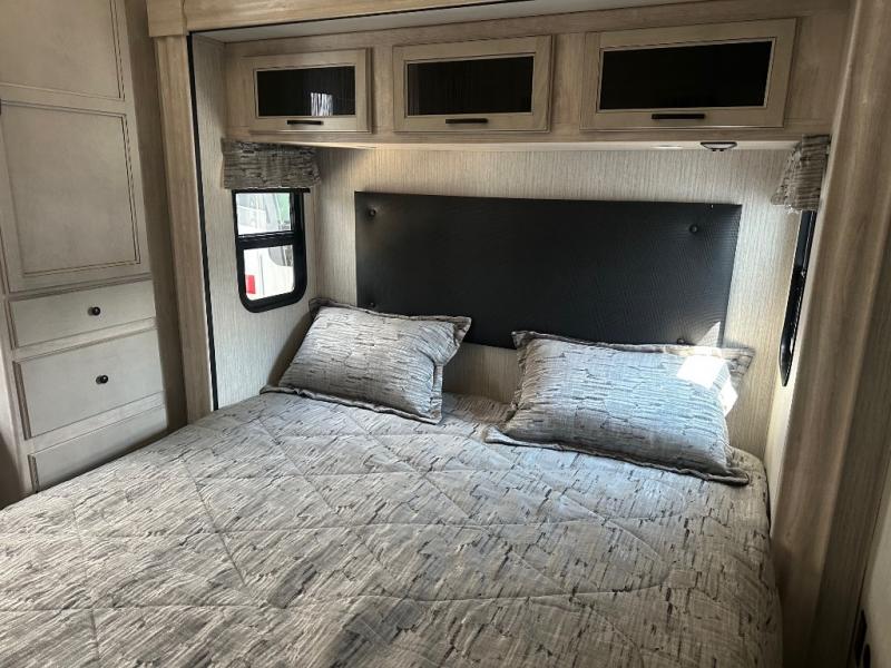 When a brand claims to be luxurious, you expect true luxury, and the Forest River Sandpiper Luxury fifth wheel delivers! The list of included features is outstanding, and the construction itself is top notch. Everything comes together on a welded aluminum-framed, vacuum-bonded laminated superstructure and a cambered powder-coated frame with rust prohibitor. There is a fully enclosed, heated underbelly and an unobstructed drop-frame pass-through storage area with cable jacks and 110V outlet. Two LED-lit exterior speakers add some fun to the outside, and the docking station includes easy winterization, hot and cold spray port, black tank flush, and pull valves for tanks. But the true luxury is found inside with the 84" interior height, residential countertops, recessed residential lighting, extra-large picture windows, LED-lit headboard, and premium sound bar with built-in flush-mount DVD player. Each unit has also been prepped for a washer/dryer so that you can extend every trip and make your Sandpiper Luxury feel more like home.