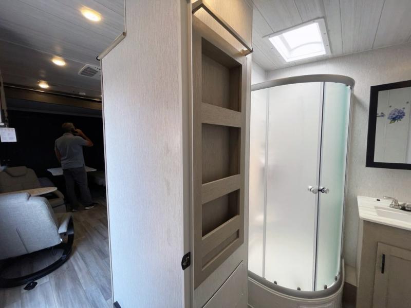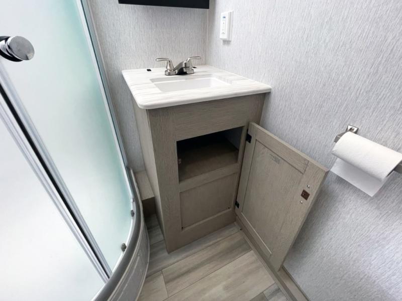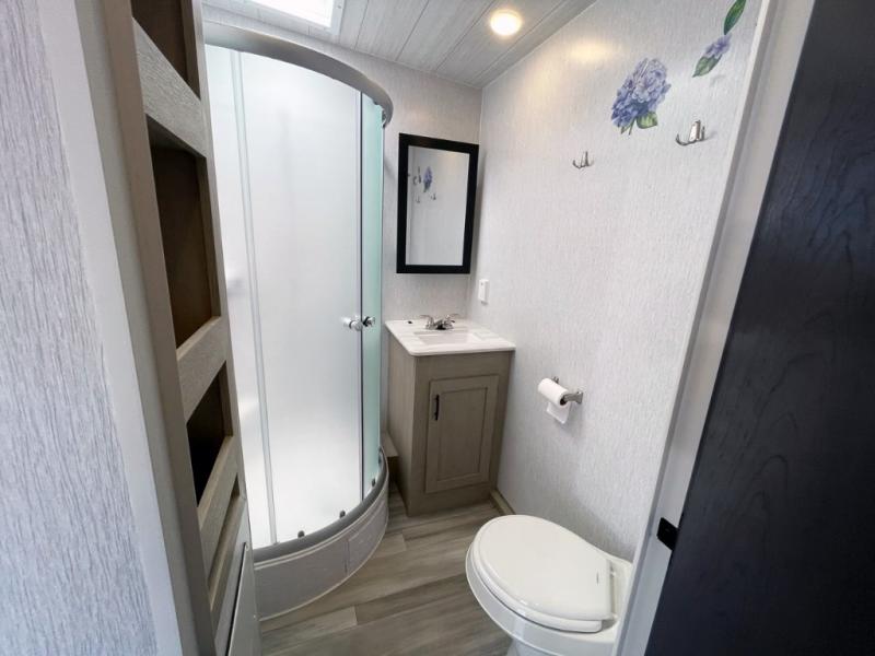 The Used 2023 Forest River Shockwave 27FSGLE is a purpose-built toy hauler blending rugged construction with residential comforts. At over 34 feet long, it features an expansive 11-foot garage bay ready for motorcycles, ATVs, or bicycles, while the main living area offers a spacious kitchen and lounge for downtime. With no slideouts to worry about, setup is quick: simply deploy the power tongue jack and stabilizers, and you’re ready to enjoy. From the outdoor kitchen package and LED lighting to the premium stereo system, every detail is designed to enhance both your work and play.