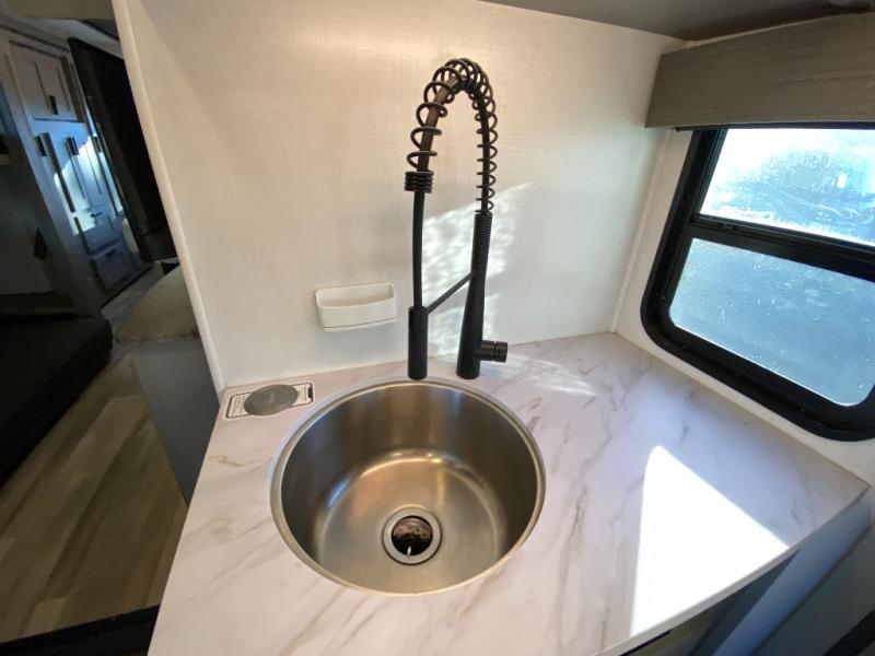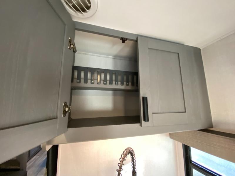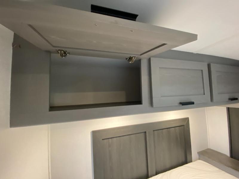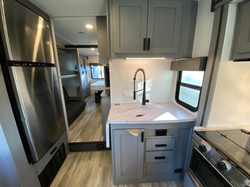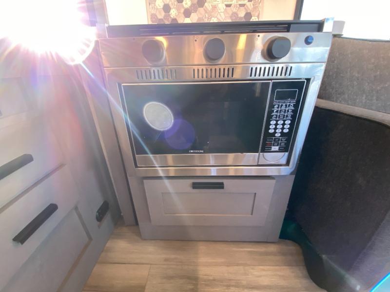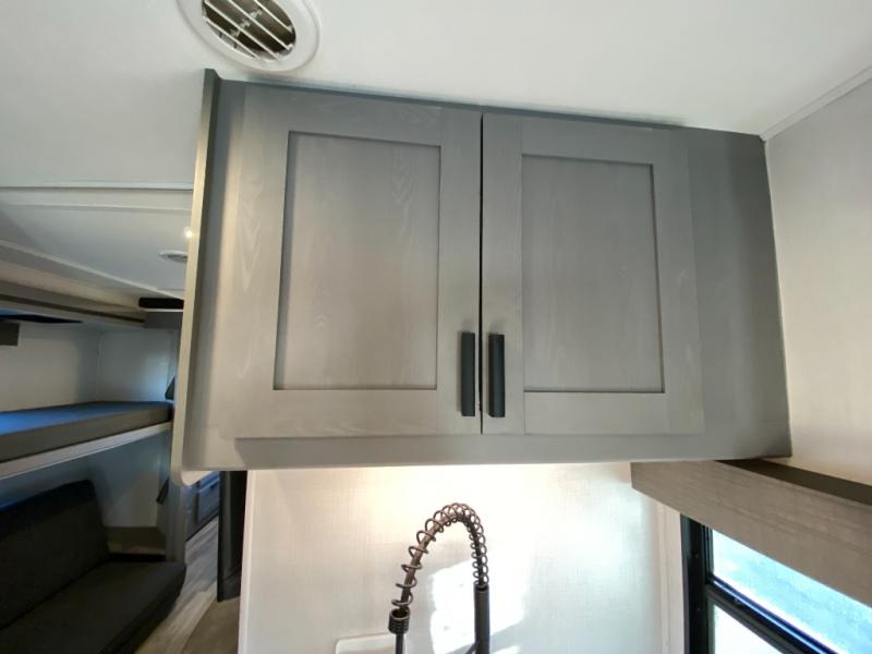 The whole family can travel together in this motorhome! You will enjoy your own sleeping space with a 60" x 74" queen bed across from the large wardrobe in the rear private bedroom. The kiddos will love having a 28" x 72" flip-down bunk above a kid's sofa sleeper and the 60" x 80" bunk over cab. You could even transform the booth dinette and sofa into extra sleeping spaces if needed. Keep everyone's bellies full with full kitchen amenities including a three burner cooktop, a 10 cu. ft. 12V refrigerator, flip-up countertop, and a undermount convection microwave. Stay protected rain or shine by the 11' power awning, and crank up the tunes with exterior speakers!