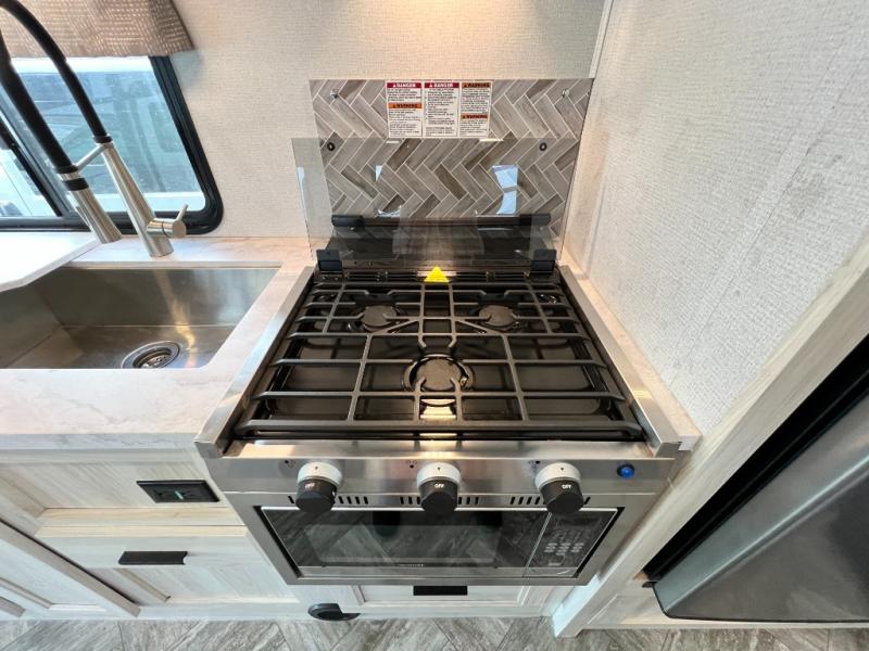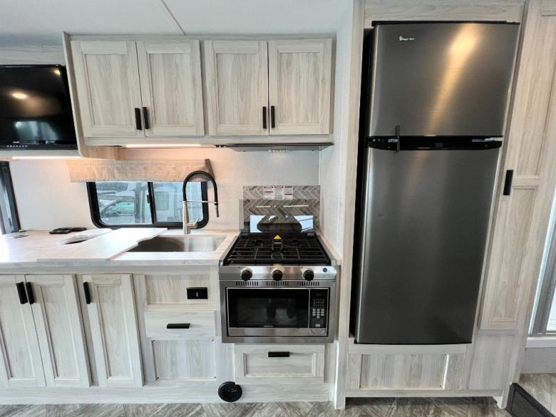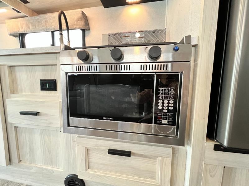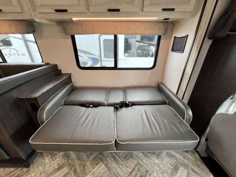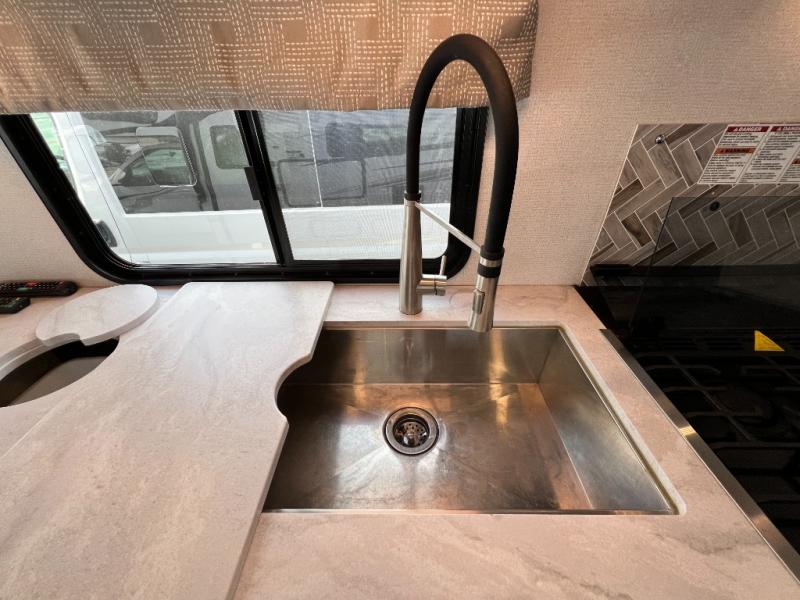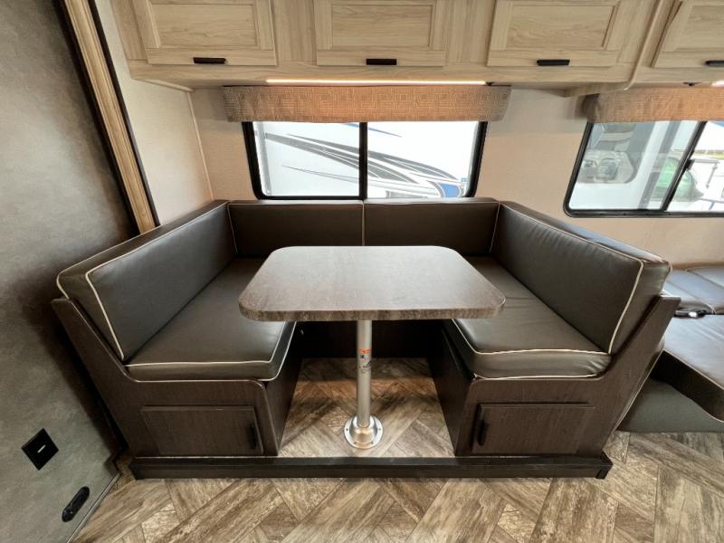 With any Sunseeker Classic Class C gas motorhome by Forest River, you will enjoy more features and quality construction at a great value! Each model comes standard with a crowned, laminated fiberglass roof and 2" thick gel coat sidewalls for maximum durability. The Winegard Air 360+ digital antenna is your all-in-one solution for your internet, TV, and FM signal needs, and you have Gateway 4G Wi-Fi capability too. The exterior has an outside shower, heated/enclosed tanks, Rotocast storage compartments, an electric awning with LED lights, and awning toppers for the slide outs. Each drive will be made easy thanks to a 9" touchscreen CarPlay/Android radio with USB and Bluetooth, a color backup camera with rearview monitor, sideview cameras, and Ultraleather seating. You'll also love the black out roller shades, upgraded appliances, and the 7' ceiling height for added space to relax!