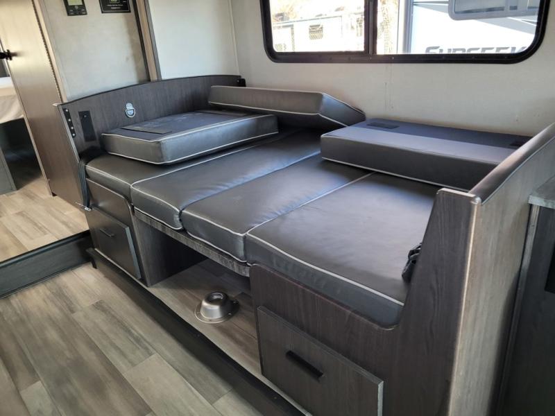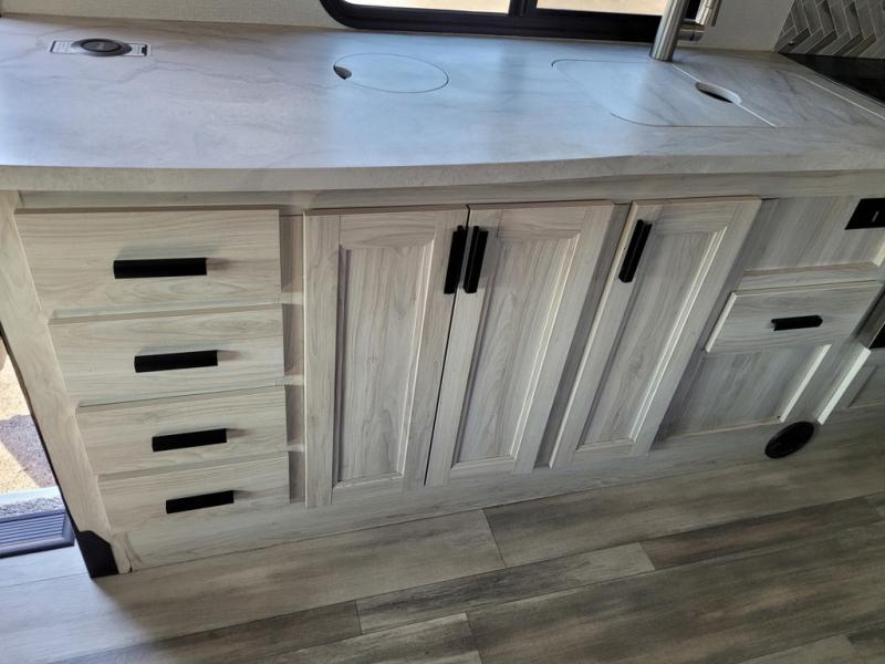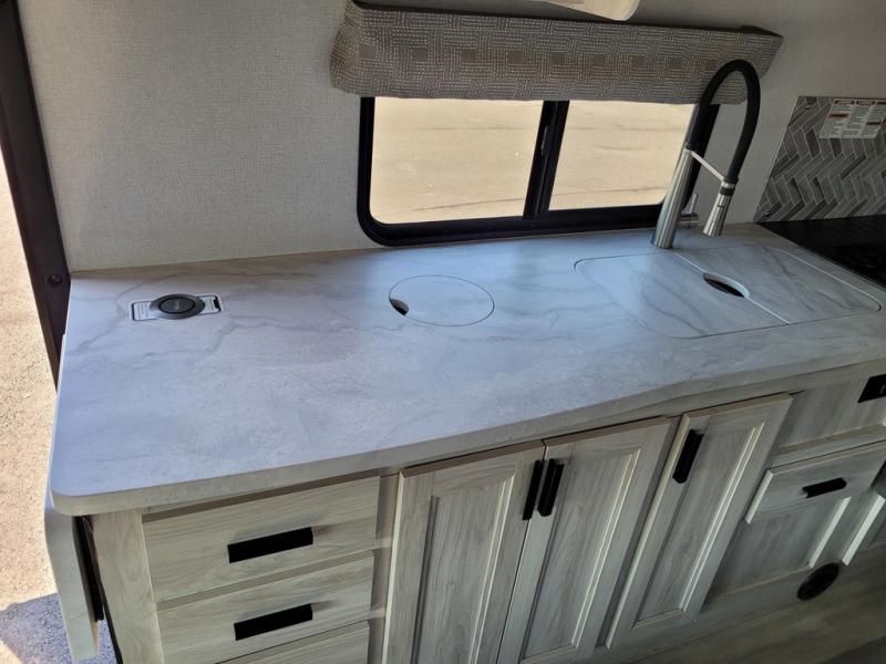 With any Sunseeker Classic Class C gas motorhome by Forest River, you will enjoy more features and quality construction at a great value! Each model comes standard with a crowned, laminated fiberglass roof and 2" thick gel coat sidewalls for maximum durability. The Winegard Air 360+ digital antenna is your all-in-one solution for your internet, TV, and FM signal needs, and you have Gateway 4G Wi-Fi capability too. The exterior has an outside shower, heated/enclosed tanks, Rotocast storage compartments, an electric awning with LED lights, and awning toppers for the slide outs. Each drive will be made easy thanks to a 9" touchscreen CarPlay/Android radio with USB and Bluetooth, a color backup camera with rearview monitor, sideview cameras, and Ultraleather seating. You'll also love the black out roller shades, upgraded appliances, and the 7' ceiling height for added space to relax!