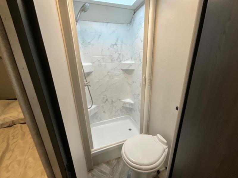 Take your family on great adventures in this Sunseeker LE Class C gas motorhome! This coach has a full kitchen equipped with a flip-up countertop, 1.3-cubic foot convection microwave, recessed three-burner range, soft-touch self-closing drawer guides, and a 10.7-cubic foot 12V refrigerator. Across from the kitchen is a U-shaped dinette that also has four seatbelts for traveling, and there are two large storage drawers in the dinette. The bathroom has an electric roof fan, an oxygen-infused shower head with flexible extension, and a shower skylight for more natural light in the morning. There is also a 40" 12V LED TV for entertainment at night out in the main living area.