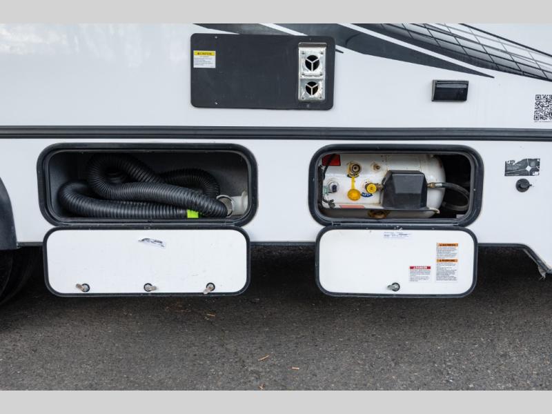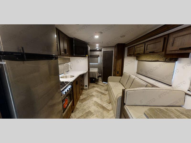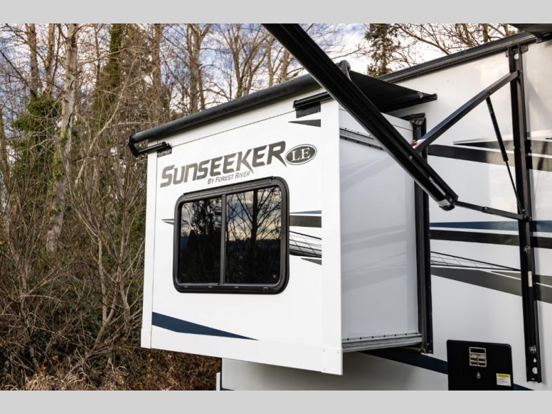 Each Forest River Sunseeker LE Class C gas motorhome comes with the LE Premier Package for your benefit! This package includes great features like backup/sideview cameras with rearview mirror monitor, a fiberglass front cap, an in-dash premium sound system with Bluetooth, a Winegard Air 360+ antenna with preparation for Gateway 4G Wi-Fi, toppers for the slide outs, and a 15,000 BTU ceiling-ducted, ultra-quiet roof air with heat pump. All of these premium features rest on a Superlite composite substrate, 2"-thick gel-coat sidewalls with lightweight composite waterproof material, block-foam insulation, and a fiberglass roof. There is a satellite/cable connection, a 30,000 BTU furnace, a Maxx Air multi-speed power fan, and black-out roller shades.